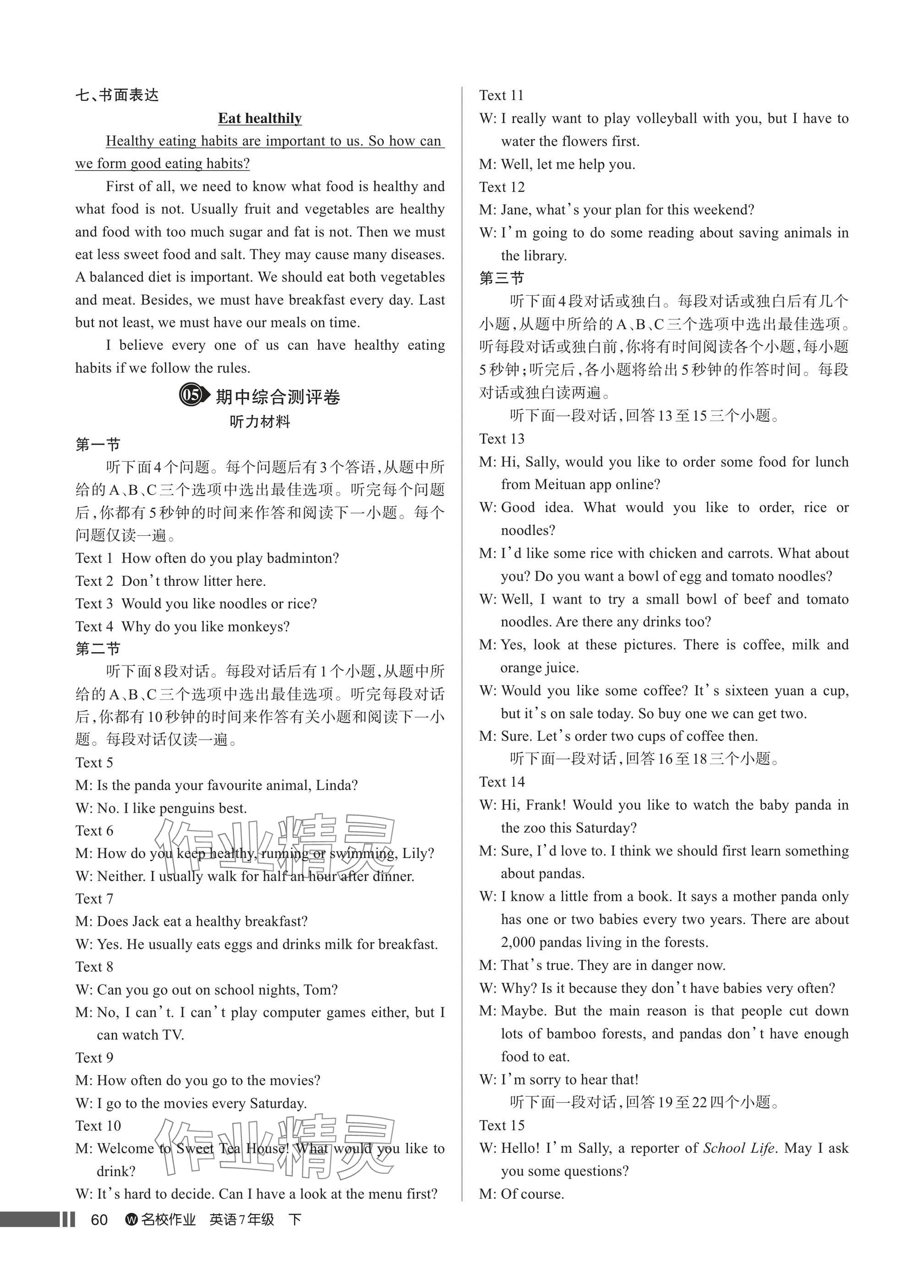 注:目前有些书本章节名称可能整理的还不是很完善,但都是按照顺序排列的,请同学们按照顺序仔细查找。练习册 2025年名校作业七年级英语下册人教版武汉专版 答案主要是用来给同学们做完题方便对答案用的,请勿直接抄袭。