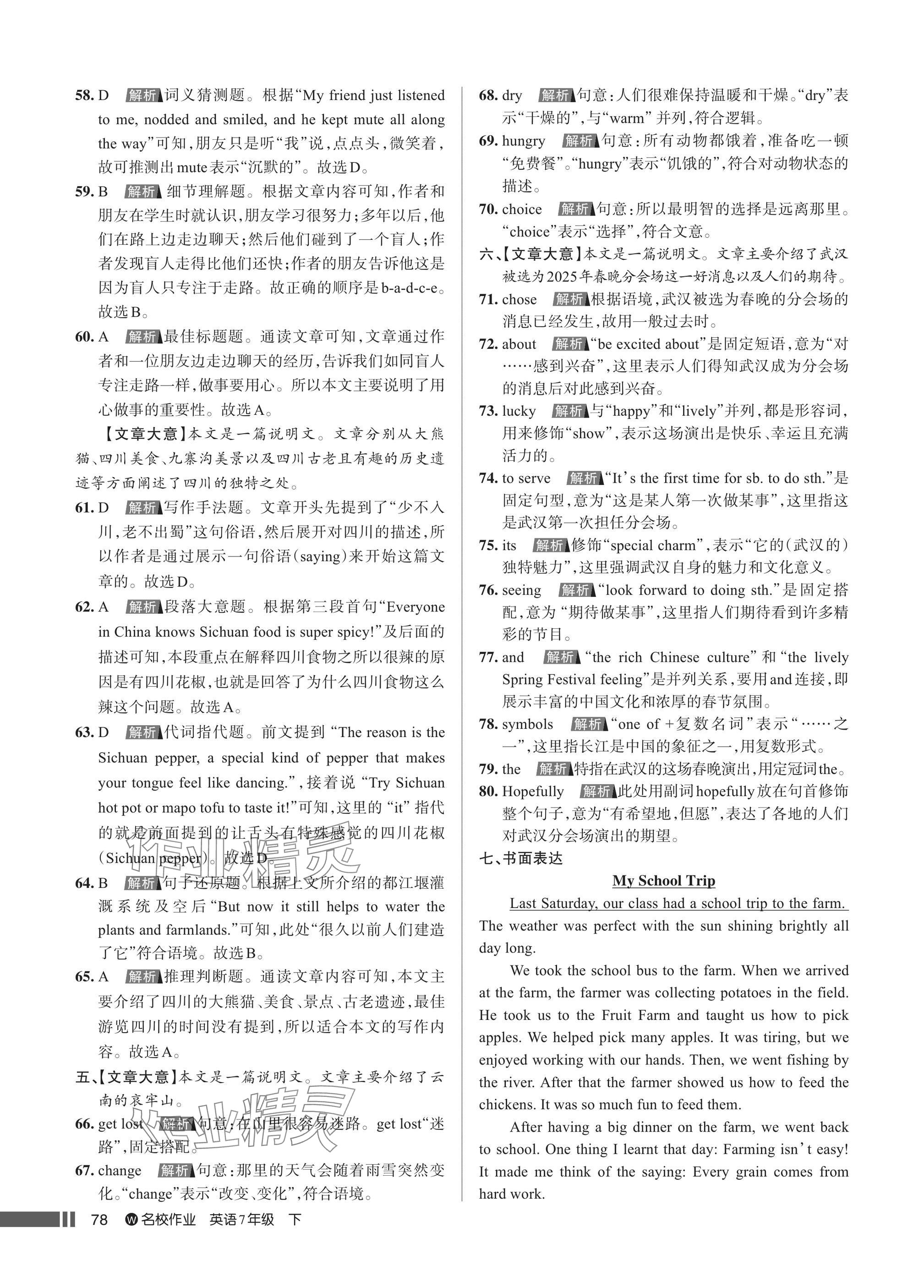 注:目前有些书本章节名称可能整理的还不是很完善,但都是按照顺序排列的,请同学们按照顺序仔细查找。练习册 2025年名校作业七年级英语下册人教版武汉专版 答案主要是用来给同学们做完题方便对答案用的,请勿直接抄袭。