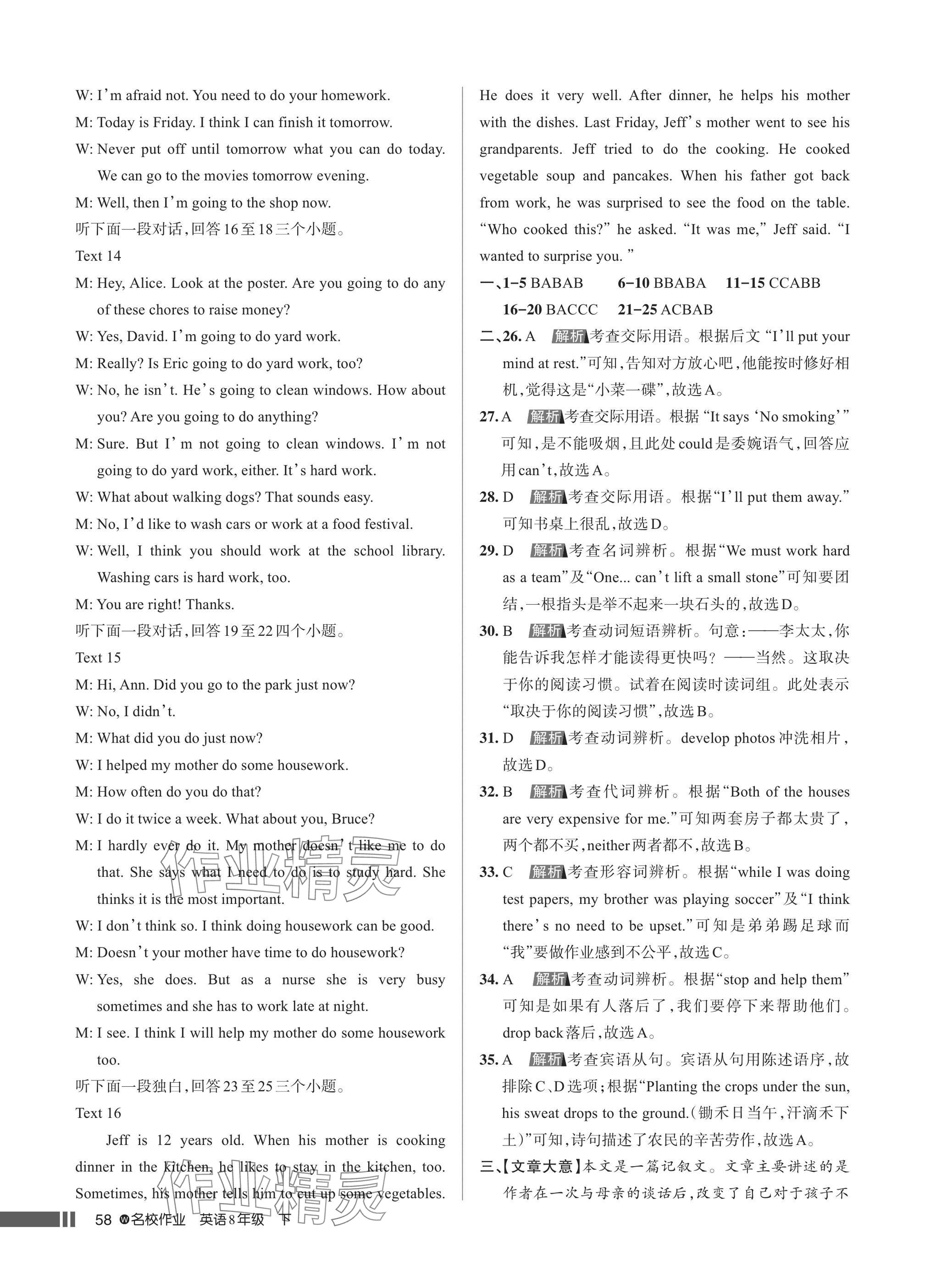 注:目前有些书本章节名称可能整理的还不是很完善,但都是按照顺序排列的,请同学们按照顺序仔细查找。练习册 2025年名校作业八年级英语下册人教版武汉专版 答案主要是用来给同学们做完题方便对答案用的,请勿直接抄袭。