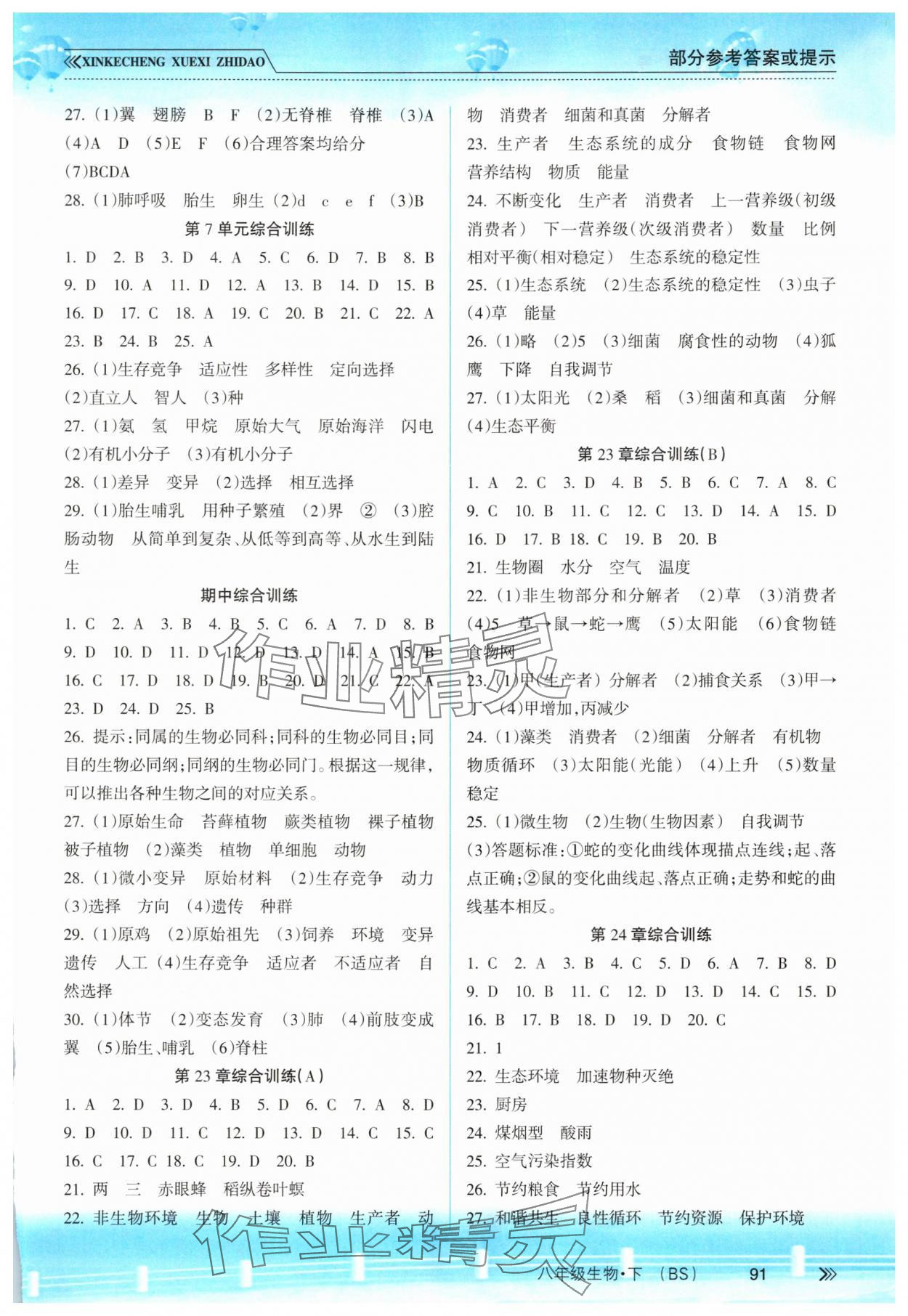 注:目前有些书本章节名称可能整理的还不是很完善,但都是按照顺序排列的,请同学们按照顺序仔细查找。练习册 2025年新课程学习指导南方出版社八年级生物下册北师大版 答案主要是用来给同学们做完题方便对答案用的,请勿直接抄袭。