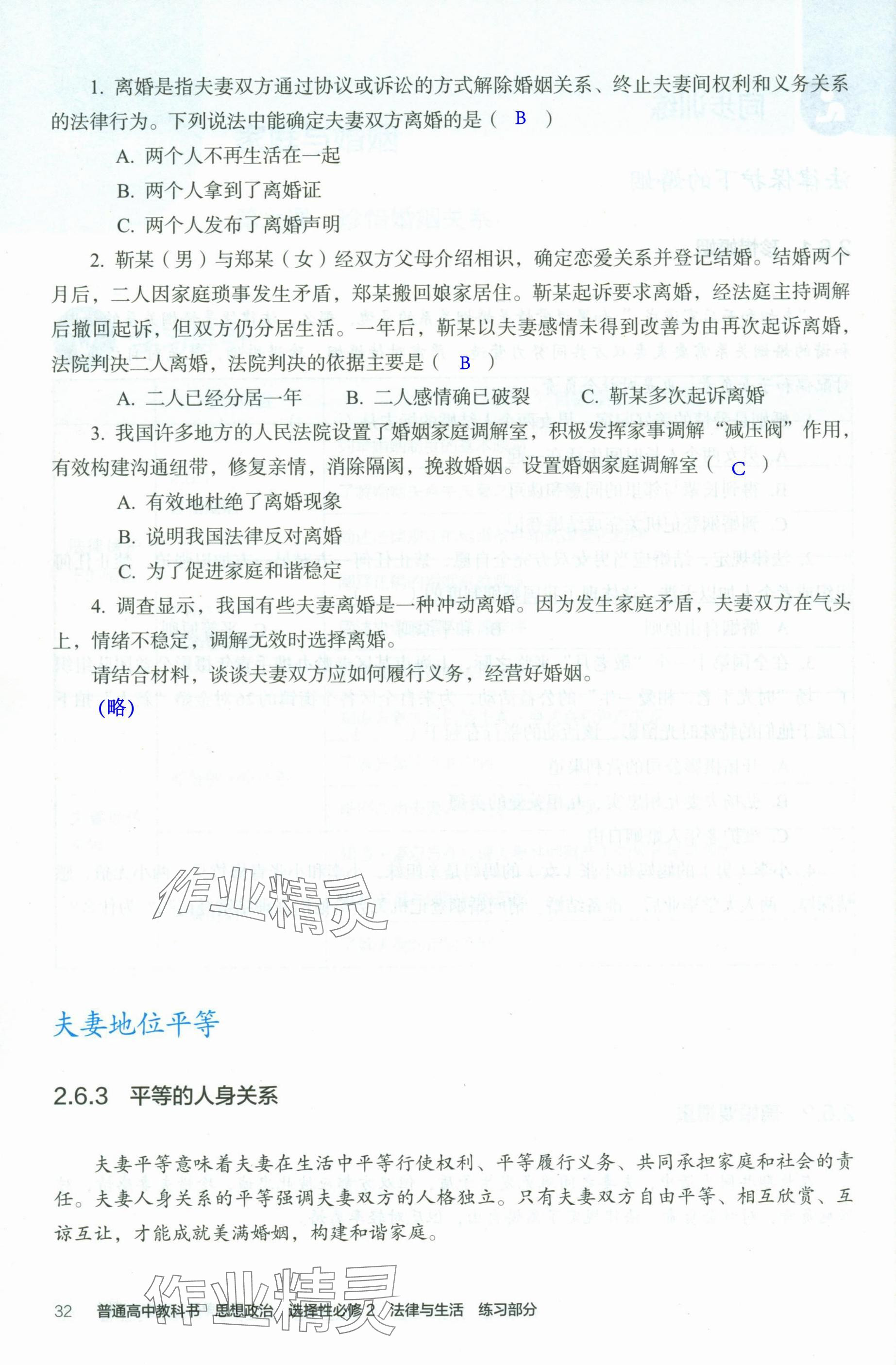 注:目前有些书本章节名称可能整理的还不是很完善,但都是按照顺序排列的,请同学们按照顺序仔细查找。练习册 2025年练习部分高中道德与法治选择性必修2人教版 答案主要是用来给同学们做完题方便对答案用的,请勿直接抄袭。