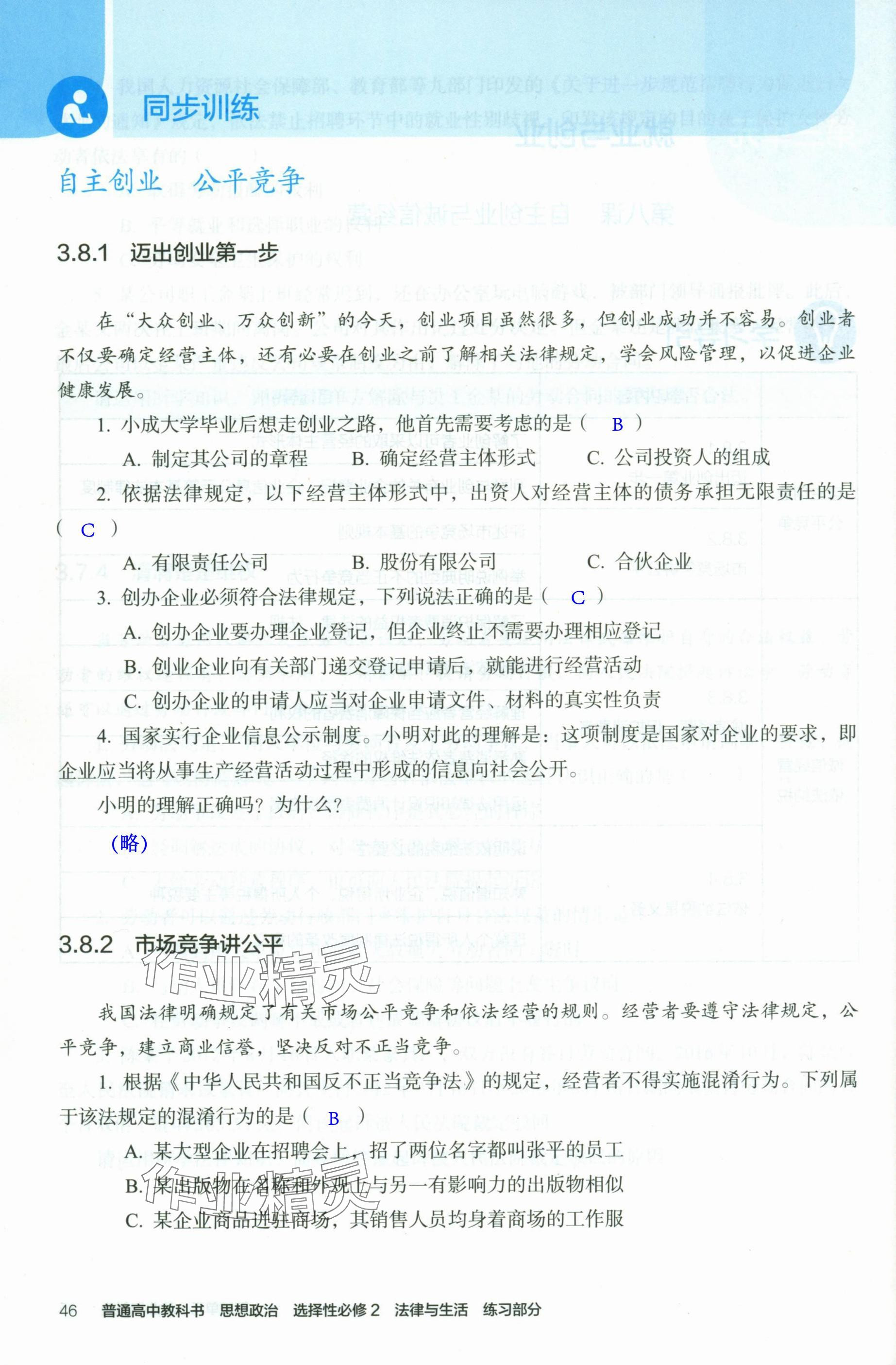 注:目前有些书本章节名称可能整理的还不是很完善,但都是按照顺序排列的,请同学们按照顺序仔细查找。练习册 2025年练习部分高中道德与法治选择性必修2人教版 答案主要是用来给同学们做完题方便对答案用的,请勿直接抄袭。