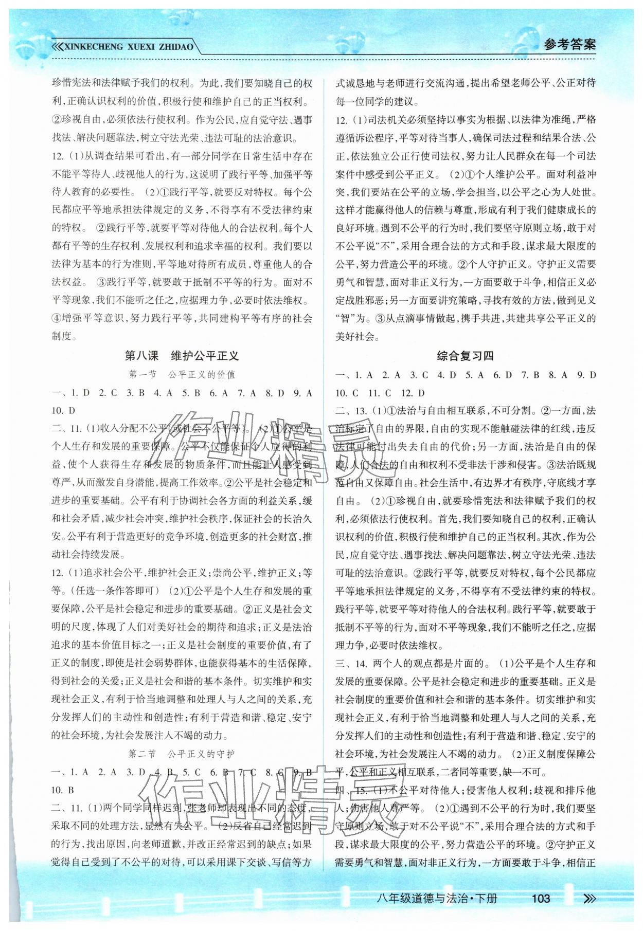 注:目前有些书本章节名称可能整理的还不是很完善,但都是按照顺序排列的,请同学们按照顺序仔细查找。练习册 2025年新课程学习指导南方出版社八年级道德与法治下册人教版 答案主要是用来给同学们做完题方便对答案用的,请勿直接抄袭。