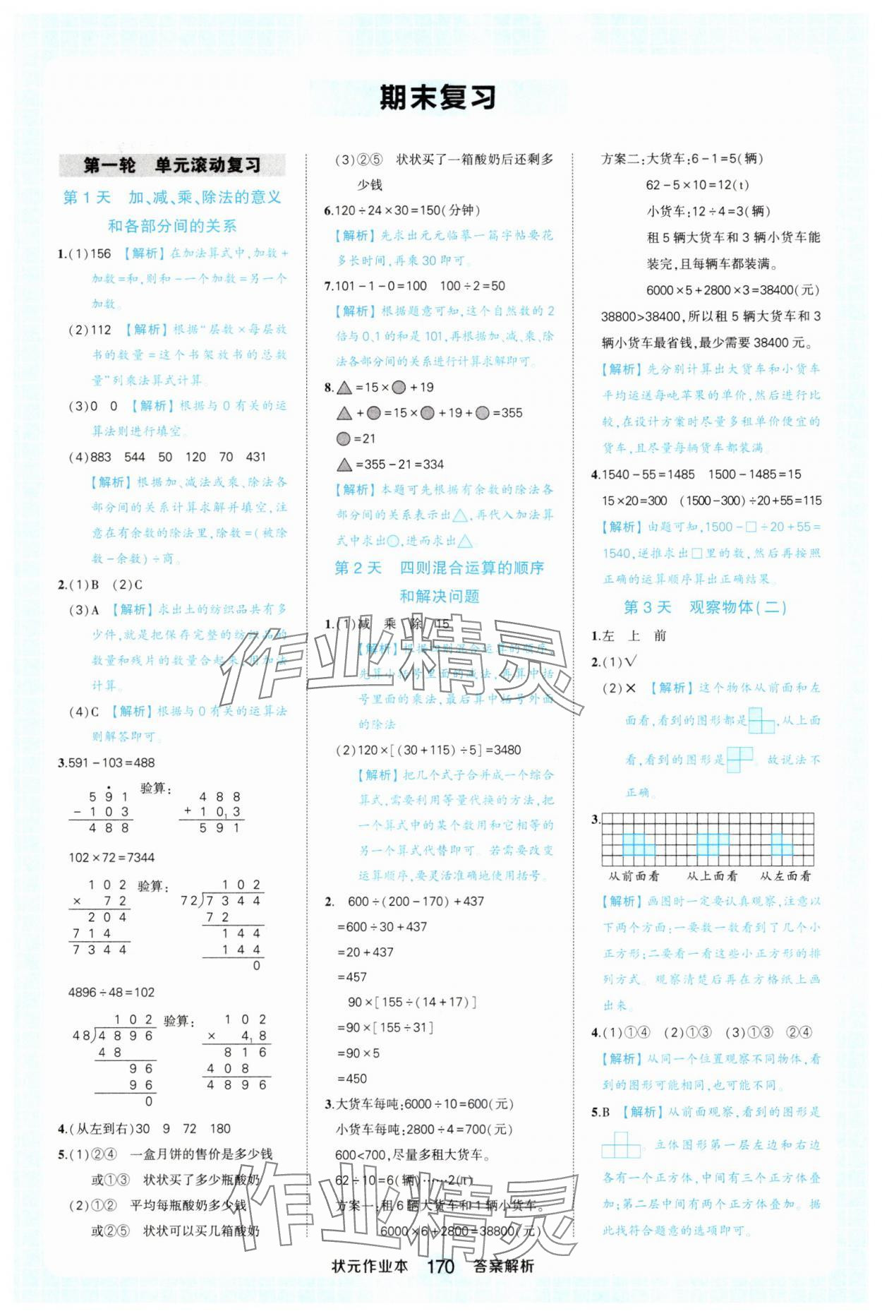 注:目前有些书本章节名称可能整理的还不是很完善,但都是按照顺序排列的,请同学们按照顺序仔细查找。练习册 2025年黄冈状元成才路状元作业本四年级数学下册人教版广东专版 答案主要是用来给同学们做完题方便对答案用的,请勿直接抄袭。