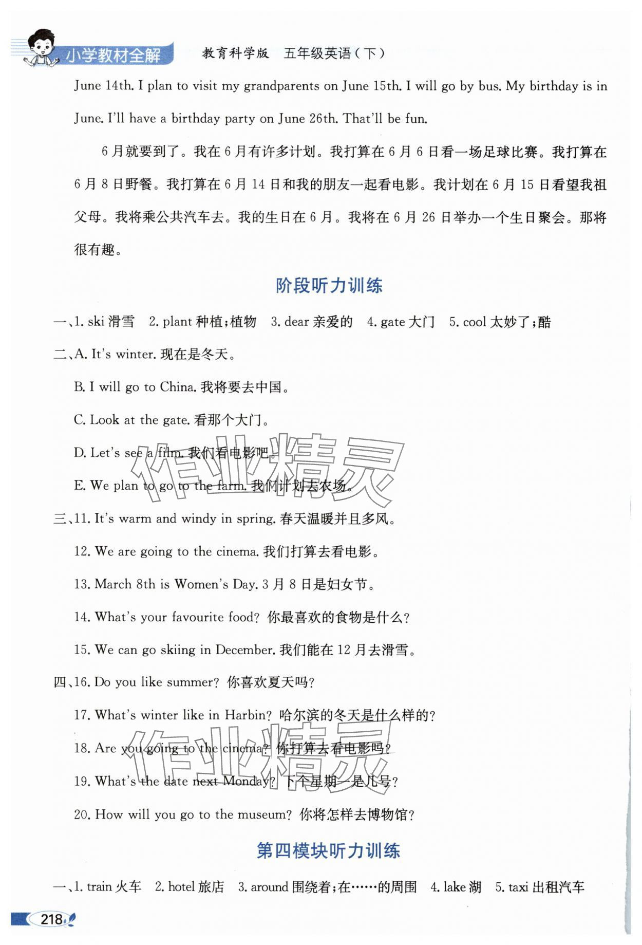 注:目前有些书本章节名称可能整理的还不是很完善,但都是按照顺序排列的,请同学们按照顺序仔细查找。练习册 2025年教材全解五年级英语下册教科版 答案主要是用来给同学们做完题方便对答案用的,请勿直接抄袭。