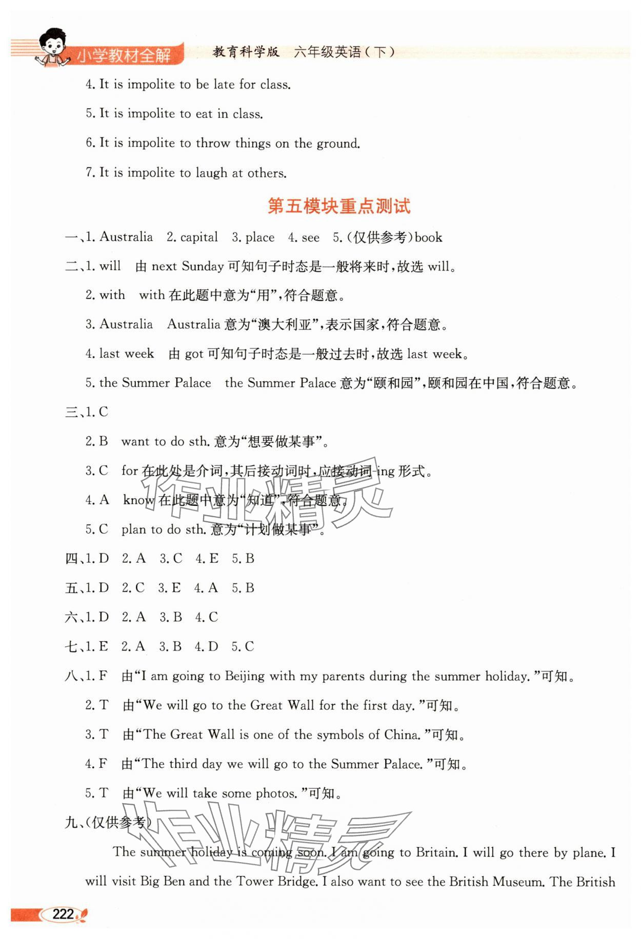 注:目前有些书本章节名称可能整理的还不是很完善,但都是按照顺序排列的,请同学们按照顺序仔细查找。练习册 2025年教材全解六年级英语下册教科版广州专版 答案主要是用来给同学们做完题方便对答案用的,请勿直接抄袭。