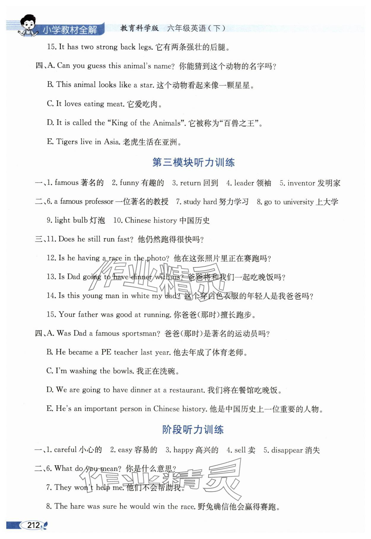 注:目前有些书本章节名称可能整理的还不是很完善,但都是按照顺序排列的,请同学们按照顺序仔细查找。练习册 2025年教材全解六年级英语下册教科版广州专版 答案主要是用来给同学们做完题方便对答案用的,请勿直接抄袭。