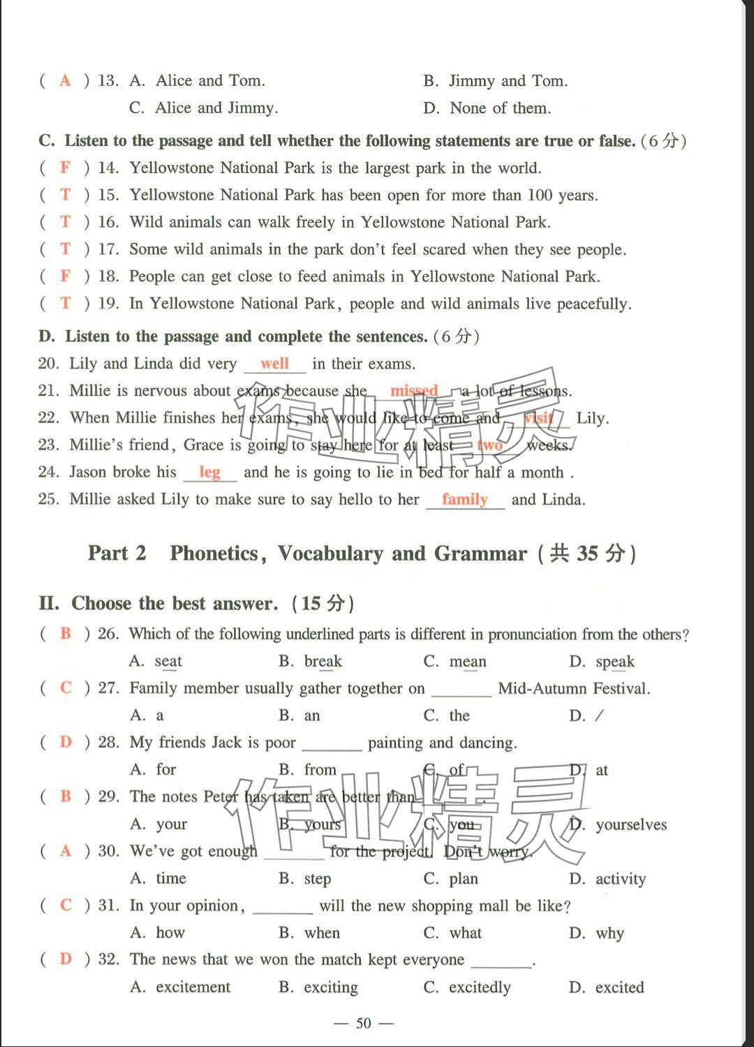 - 参考答案第50页