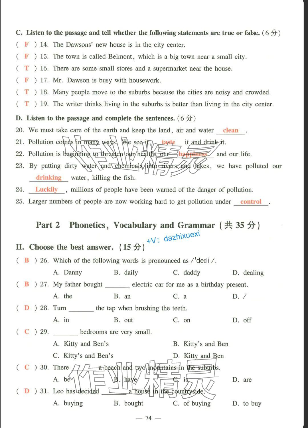 - 参考答案第74页