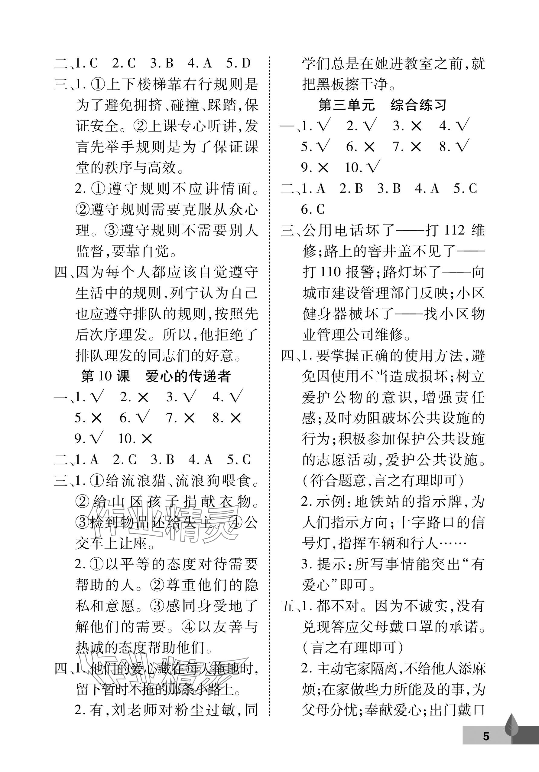 注:目前有些书本章节名称可能整理的还不是很完善,但都是按照顺序排列的,请同学们按照顺序仔细查找。练习册 2025年黄冈作业本武汉大学出版社三年级道德与法治下册人教版 答案主要是用来给同学们做完题方便对答案用的,请勿直接抄袭。