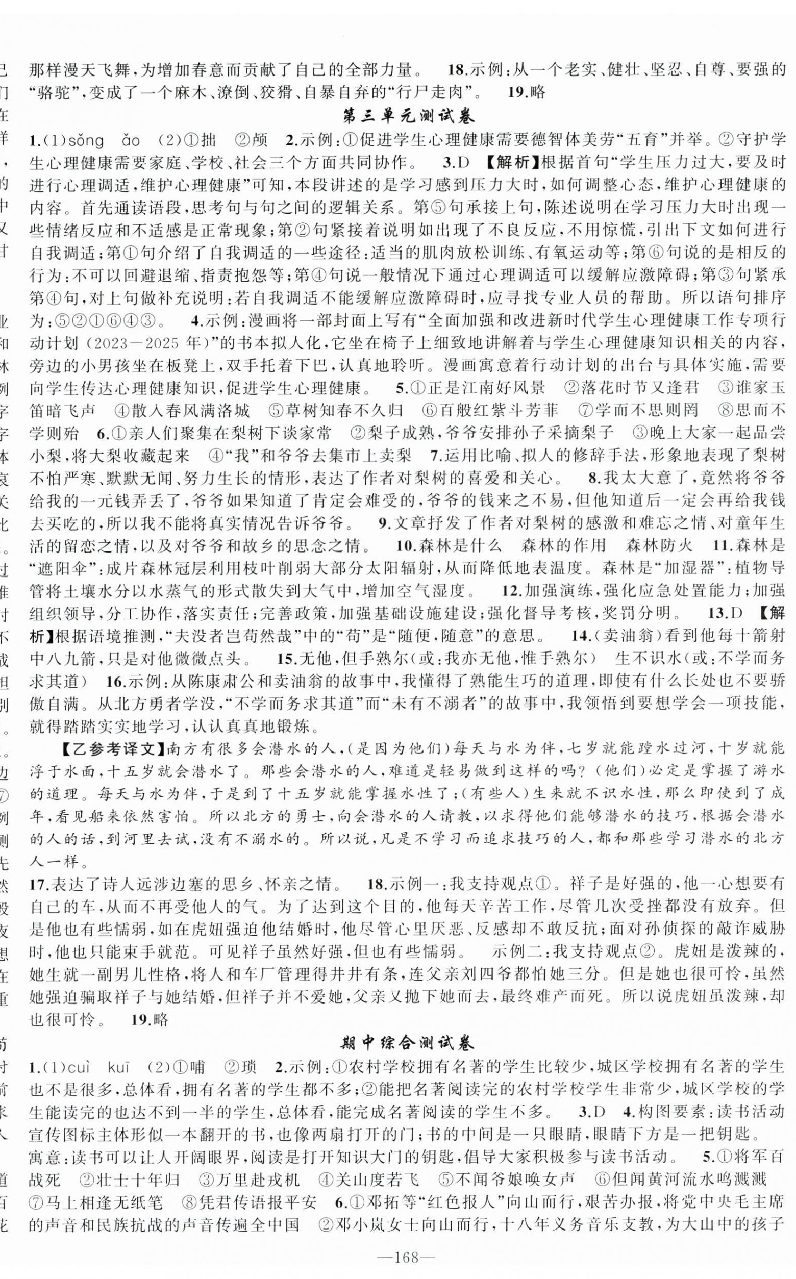 注:目前有些书本章节名称可能整理的还不是很完善,但都是按照顺序排列的,请同学们按照顺序仔细查找。练习册 2025年原创新课堂七年级语文下册人教版少年季河南专版 答案主要是用来给同学们做完题方便对答案用的,请勿直接抄袭。