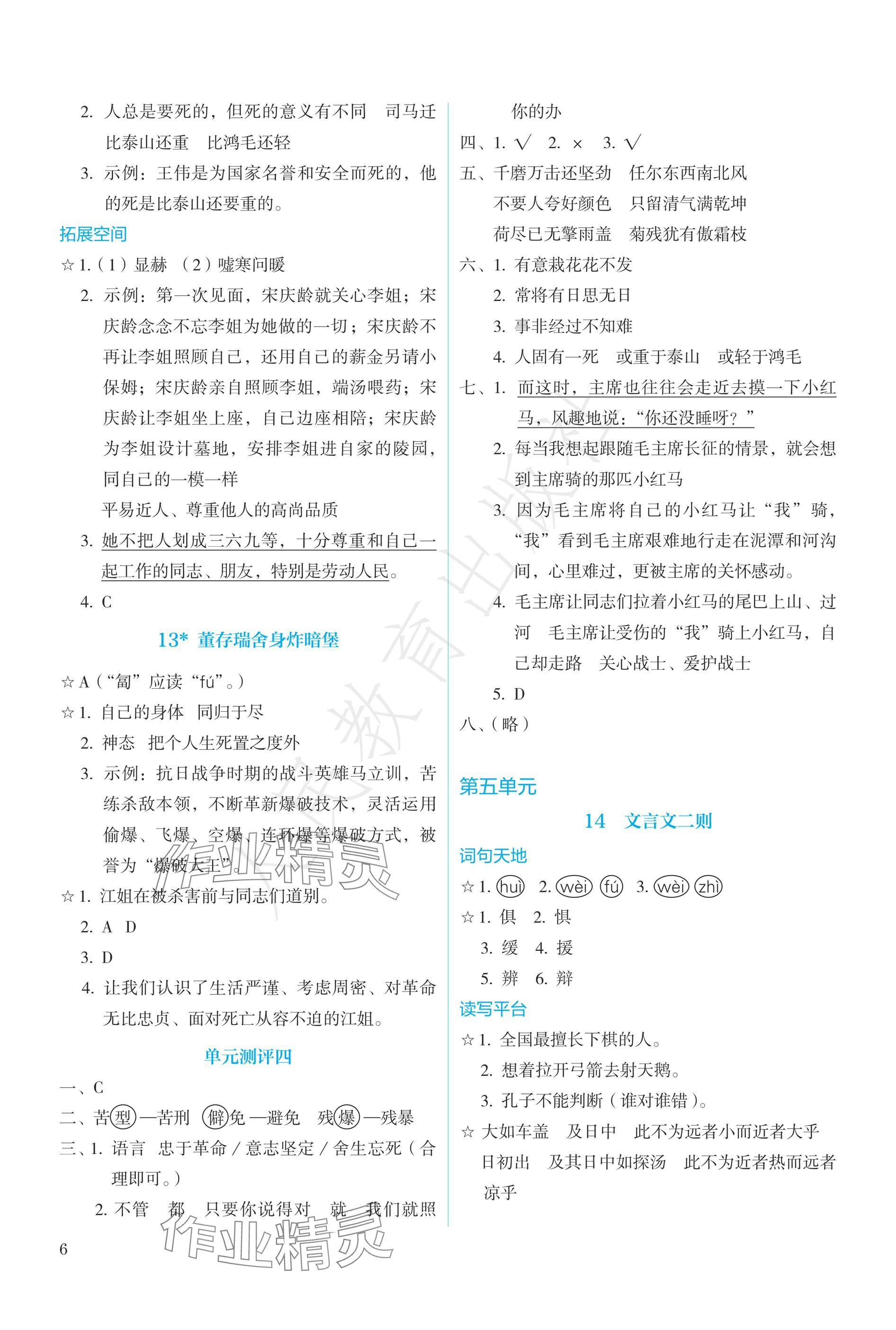 注:目前有些书本章节名称可能整理的还不是很完善,但都是按照顺序排列的,请同学们按照顺序仔细查找。练习册 2025年人教金学典同步练习册同步解析与测评六年级语文下册人教版精编版 答案主要是用来给同学们做完题方便对答案用的,请勿直接抄袭。