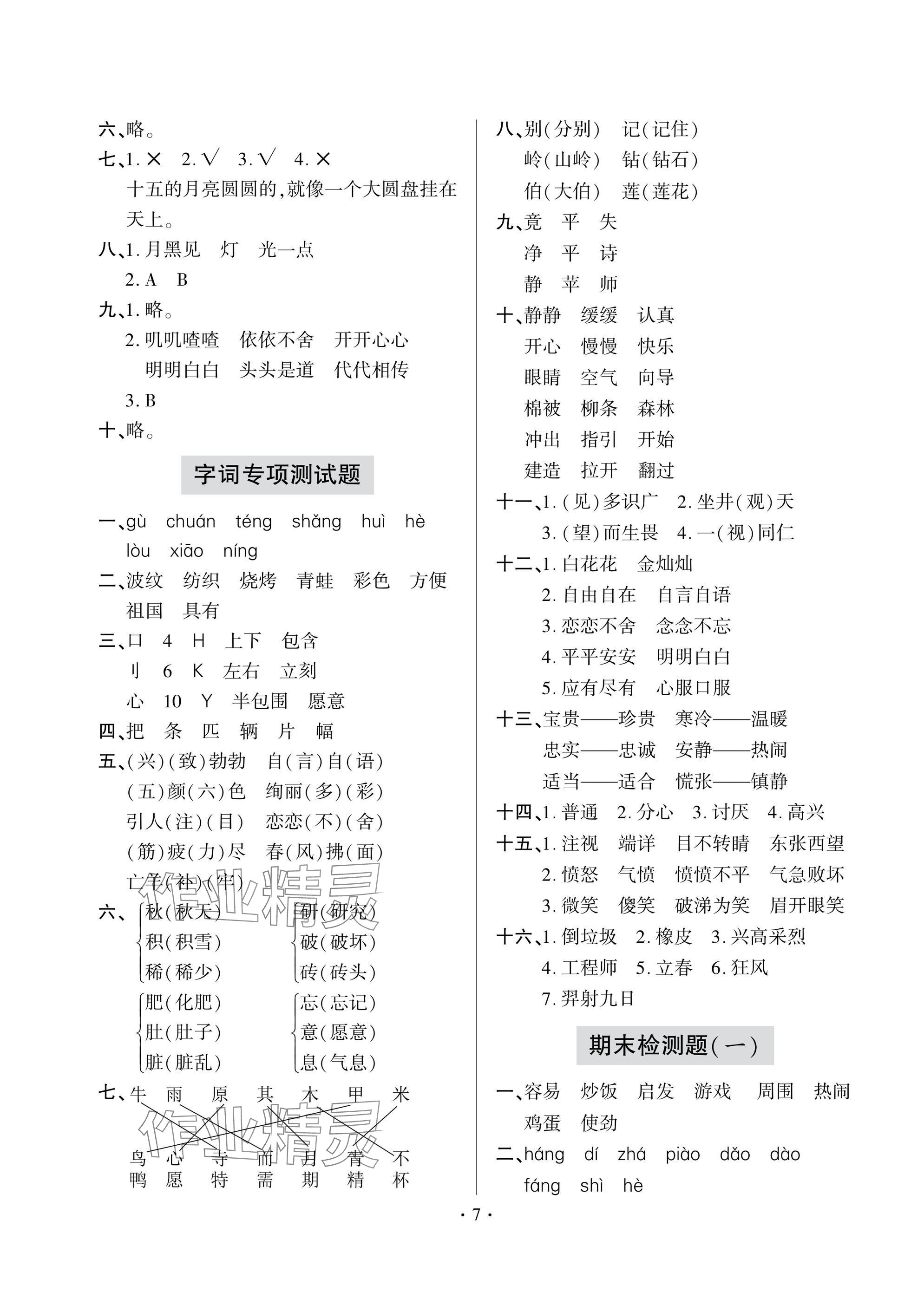注:目前有些书本章节名称可能整理的还不是很完善,但都是按照顺序排列的,请同学们按照顺序仔细查找。练习册 2025年单元自测试卷二年级语文下学期人教版 答案主要是用来给同学们做完题方便对答案用的,请勿直接抄袭。