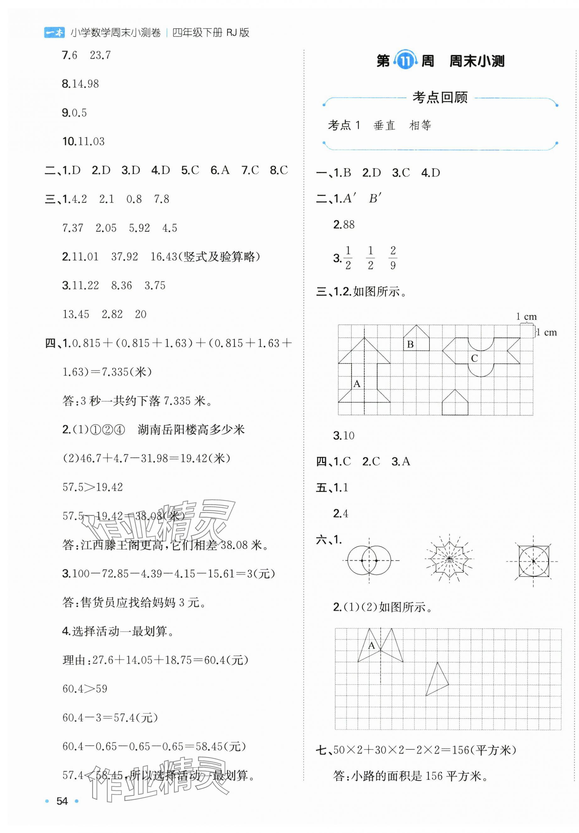 注:目前有些书本章节名称可能整理的还不是很完善,但都是按照顺序排列的,请同学们按照顺序仔细查找。练习册 2025年一本周末小测卷四年级数学下册人教版 答案主要是用来给同学们做完题方便对答案用的,请勿直接抄袭。