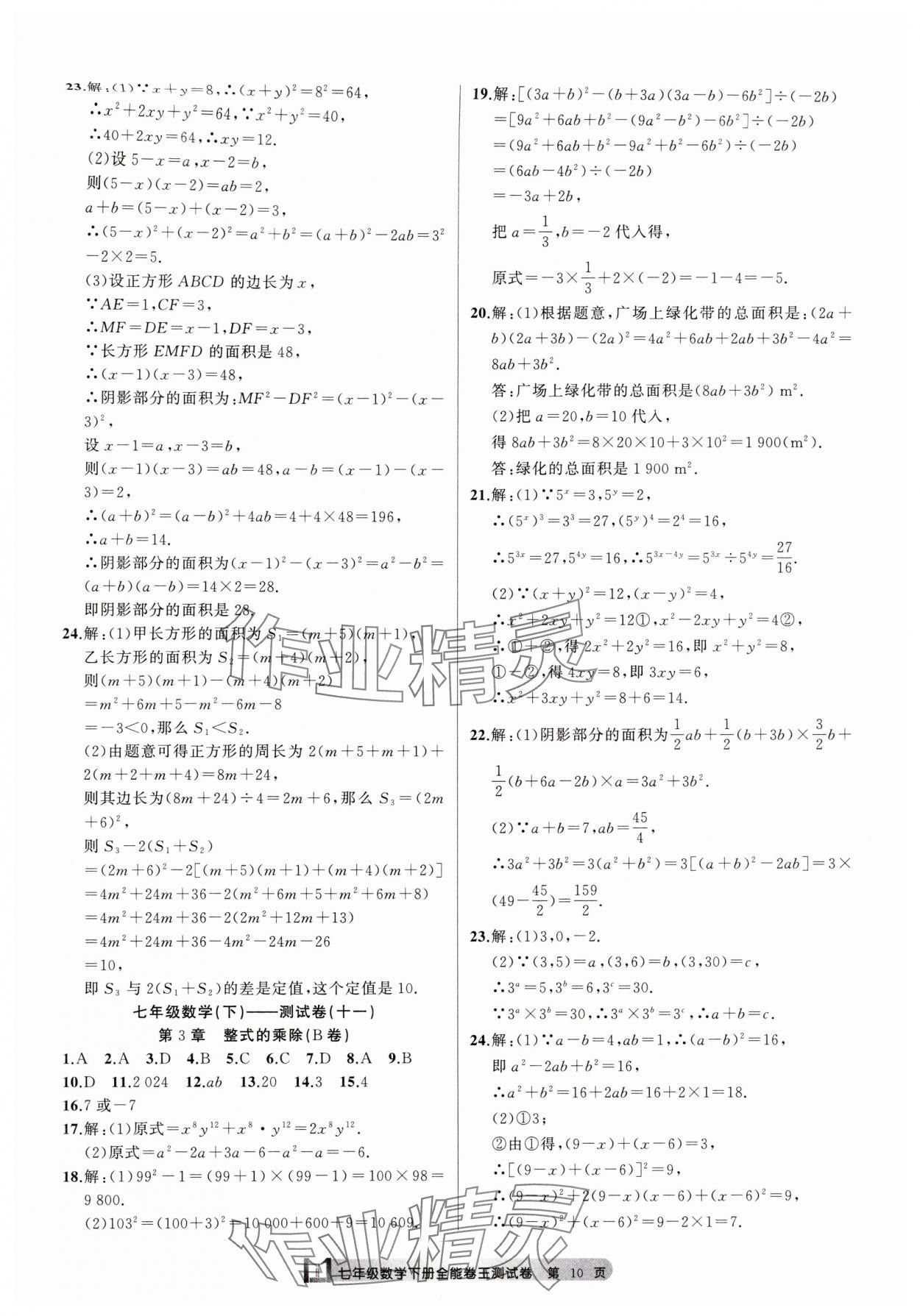 注:目前有些书本章节名称可能整理的还不是很完善,但都是按照顺序排列的,请同学们按照顺序仔细查找。练习册 2025年全能卷王单元测试卷七年级数学下册浙教版 答案主要是用来给同学们做完题方便对答案用的,请勿直接抄袭。