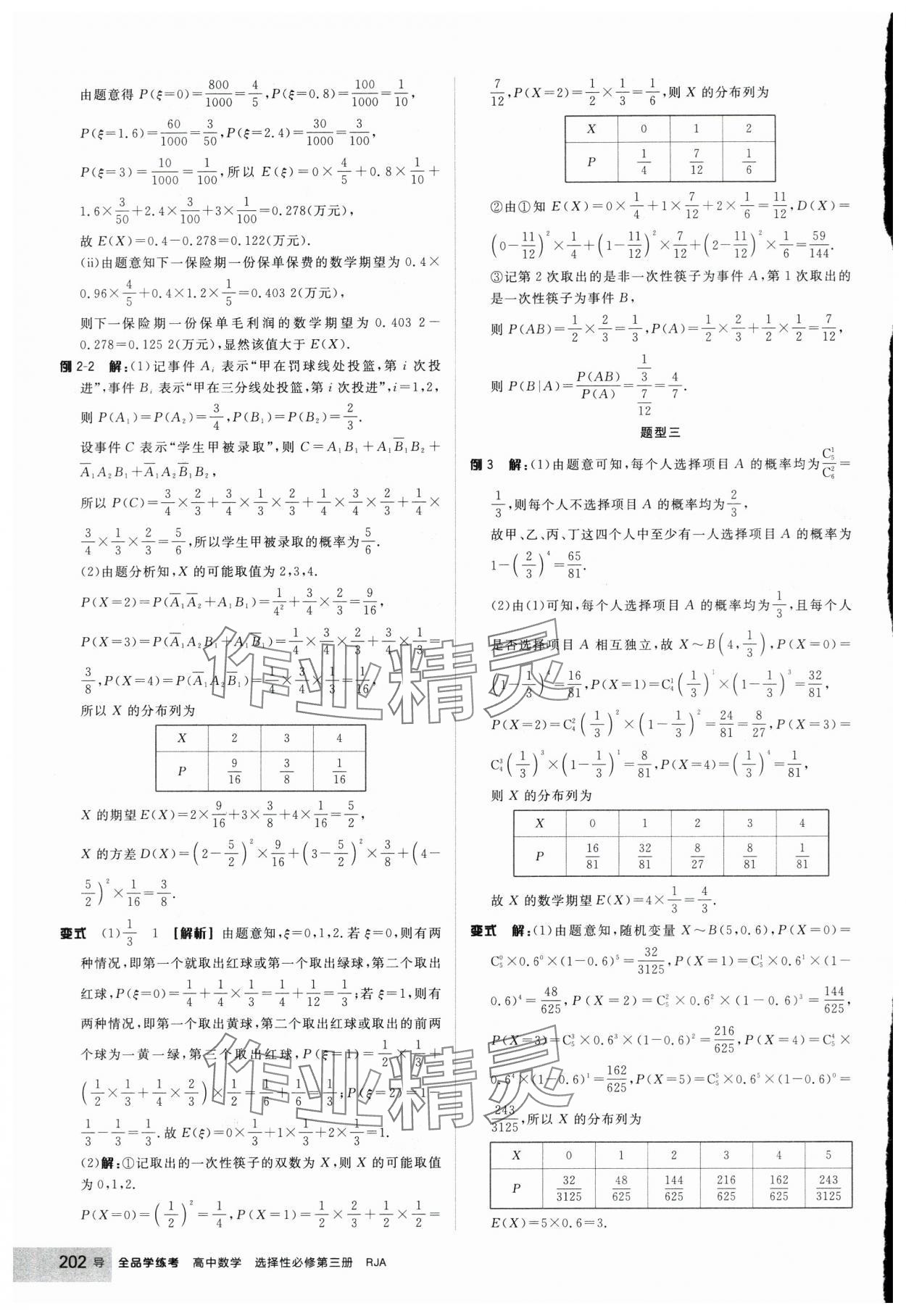 2025年全品学练考高中数学选择性必修第三册人教版