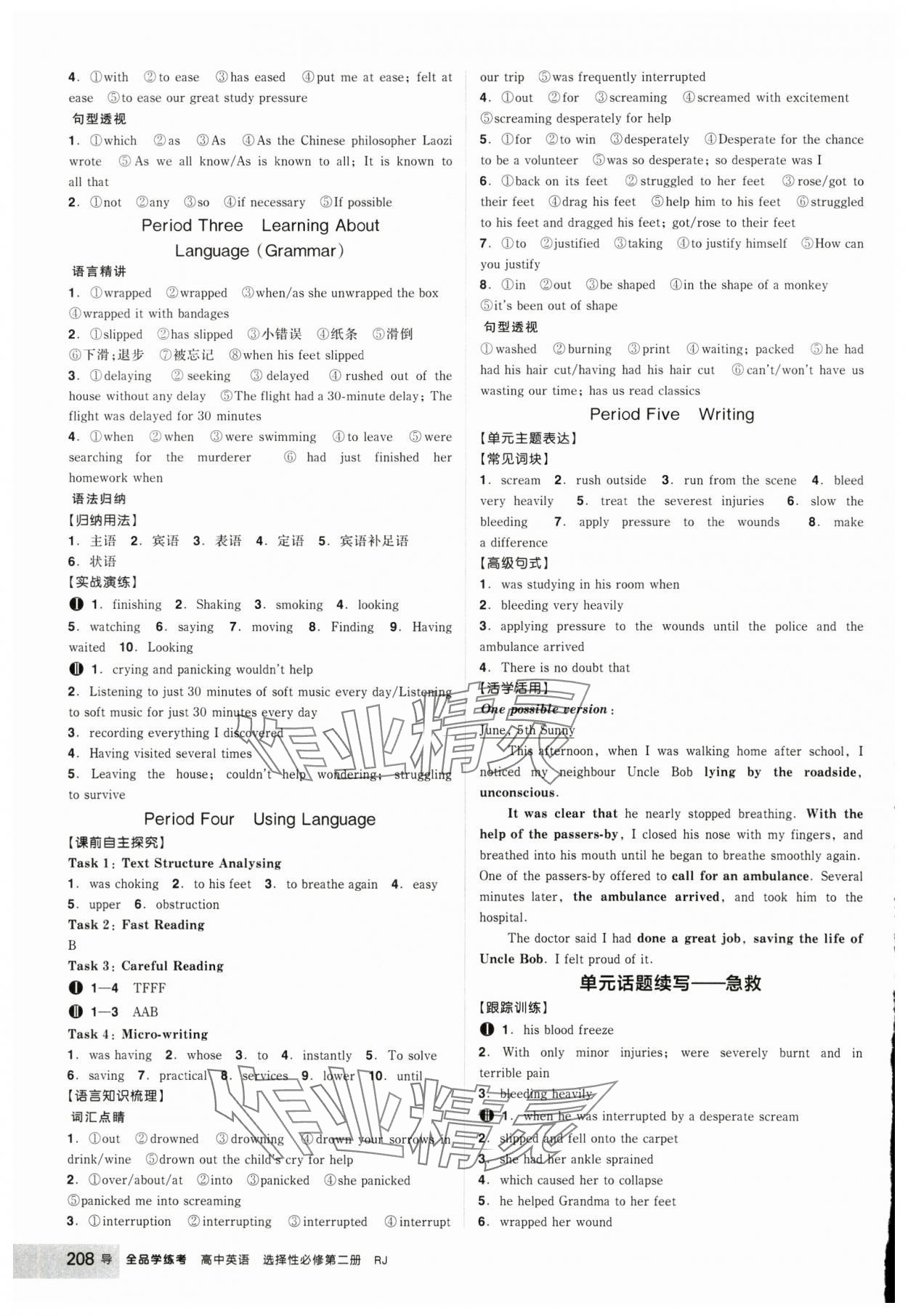 注:目前有些书本章节名称可能整理的还不是很完善,但都是按照顺序排列的,请同学们按照顺序仔细查找。练习册 2025年全品学练考高中英语选择性必修第二册人教版 答案主要是用来给同学们做完题方便对答案用的,请勿直接抄袭。