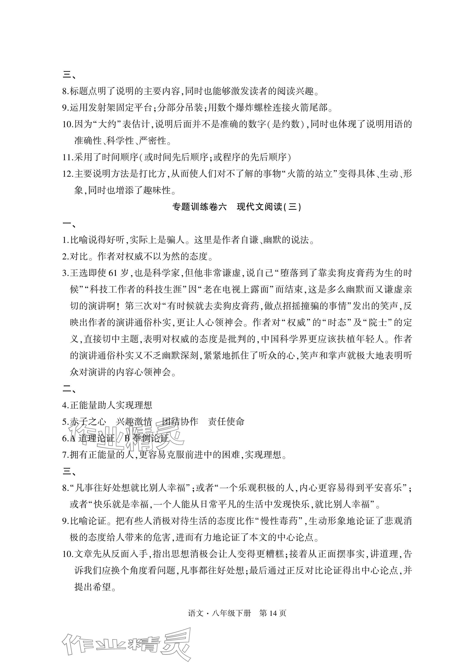 注:目前有些书本章节名称可能整理的还不是很完善,但都是按照顺序排列的,请同学们按照顺序仔细查找。练习册 2025年初中同步练习册自主测试卷八年级语文下册人教版 答案主要是用来给同学们做完题方便对答案用的,请勿直接抄袭。