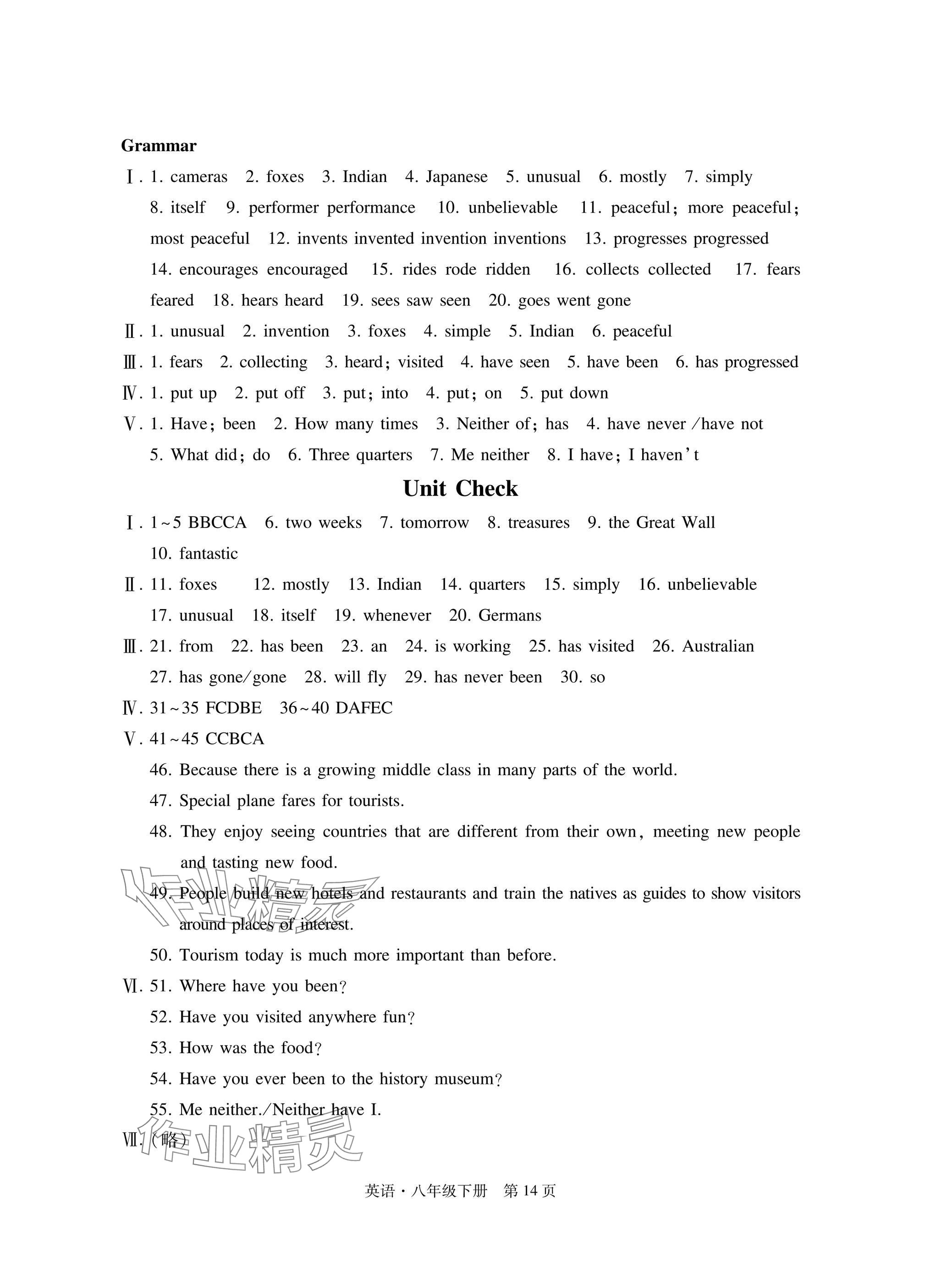 注:目前有些书本章节名称可能整理的还不是很完善,但都是按照顺序排列的,请同学们按照顺序仔细查找。练习册 2025年初中同步练习册自主测试卷八年级英语下册人教版 答案主要是用来给同学们做完题方便对答案用的,请勿直接抄袭。