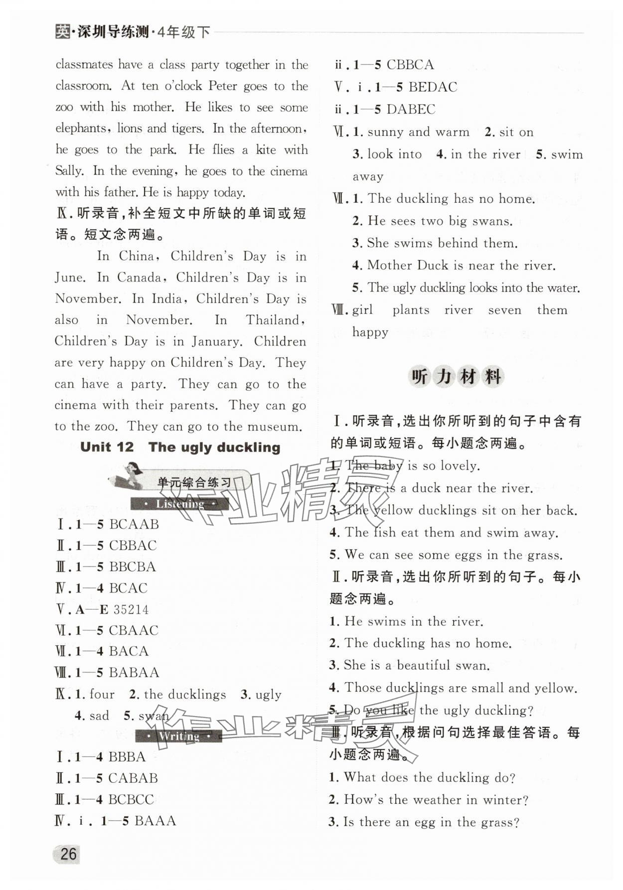 注:目前有些书本章节名称可能整理的还不是很完善,但都是按照顺序排列的,请同学们按照顺序仔细查找。练习册 2025年状元坊全程突破导练测四年级英语下册沪教版深圳专版 答案主要是用来给同学们做完题方便对答案用的,请勿直接抄袭。