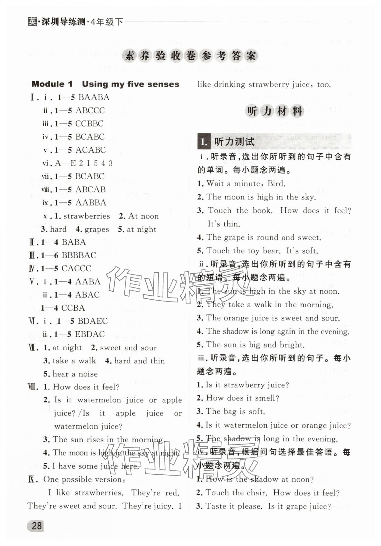 2025年状元坊全程突破导练测四年级英语下册沪教版深圳专版