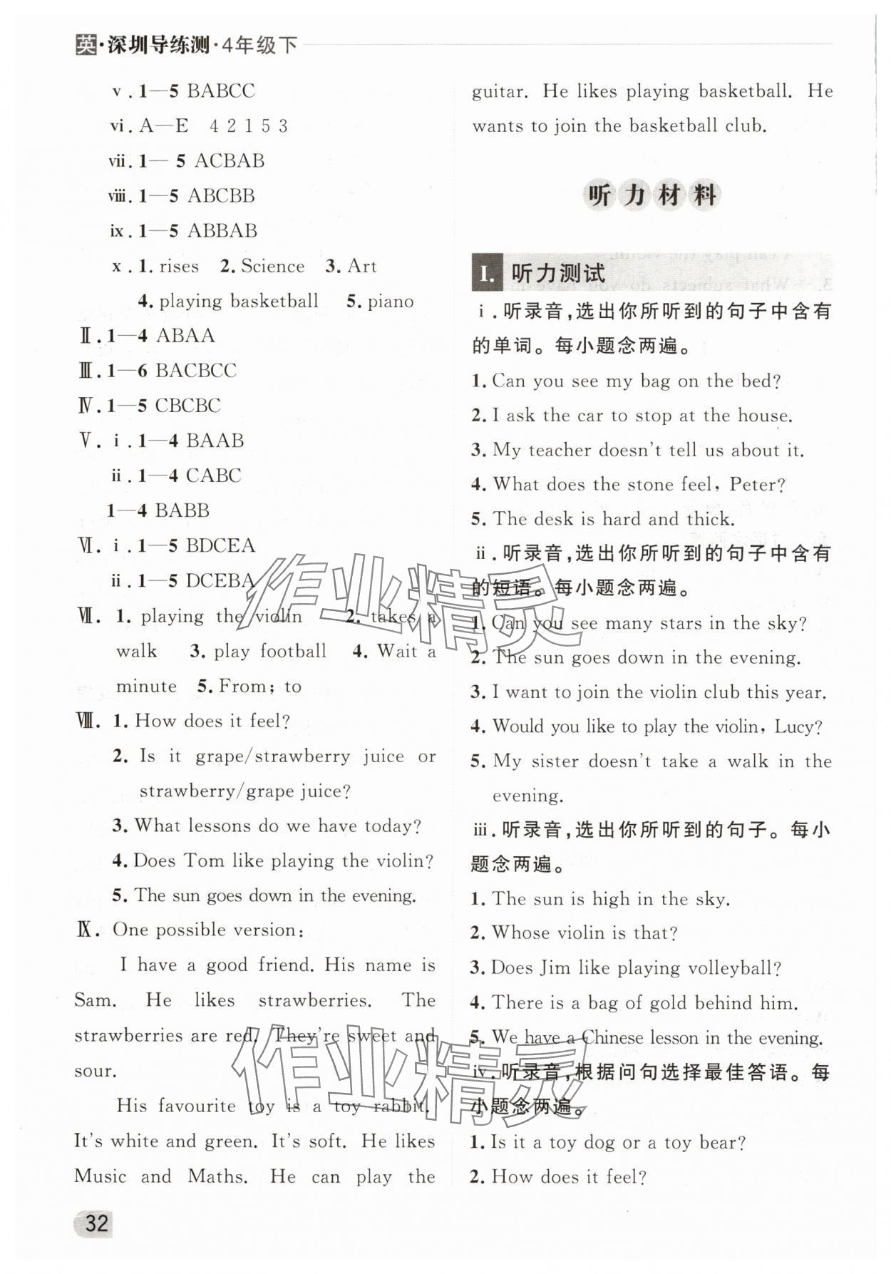 2025年状元坊全程突破导练测四年级英语下册沪教版深圳专版