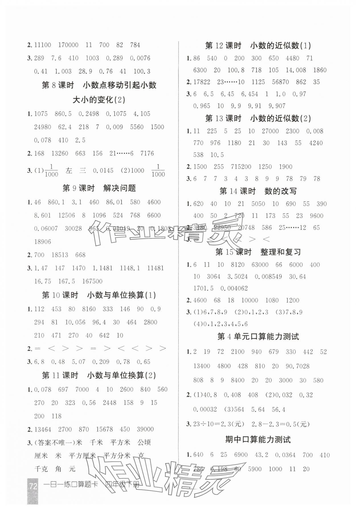 注:目前有些书本章节名称可能整理的还不是很完善,但都是按照顺序排列的,请同学们按照顺序仔细查找。练习册 2025年1日1练口算题卡四年级下册人教版 答案主要是用来给同学们做完题方便对答案用的,请勿直接抄袭。