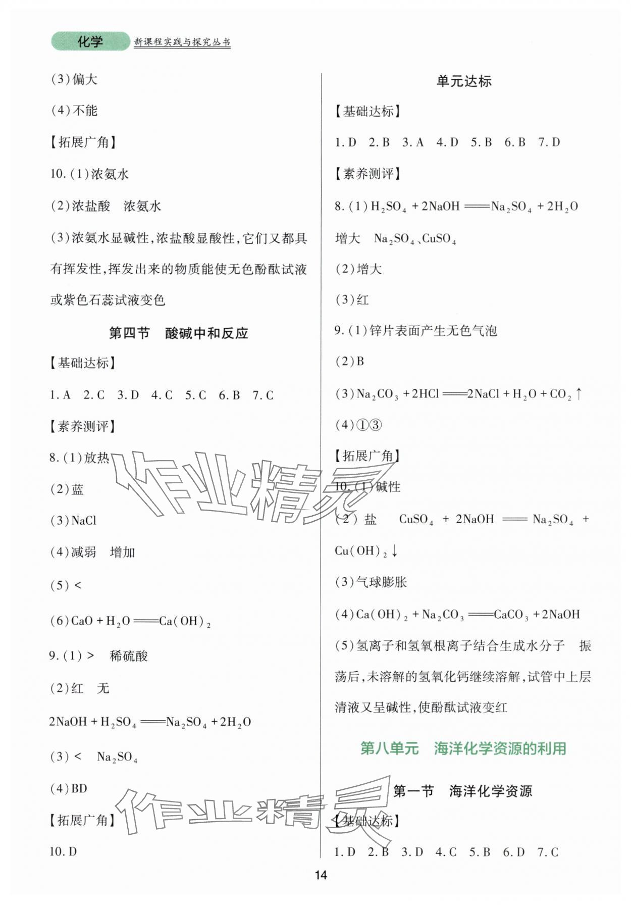 注:目前有些书本章节名称可能整理的还不是很完善,但都是按照顺序排列的,请同学们按照顺序仔细查找。练习册 2025年新课程实践与探究丛书九年级化学下册鲁教版 答案主要是用来给同学们做完题方便对答案用的,请勿直接抄袭。