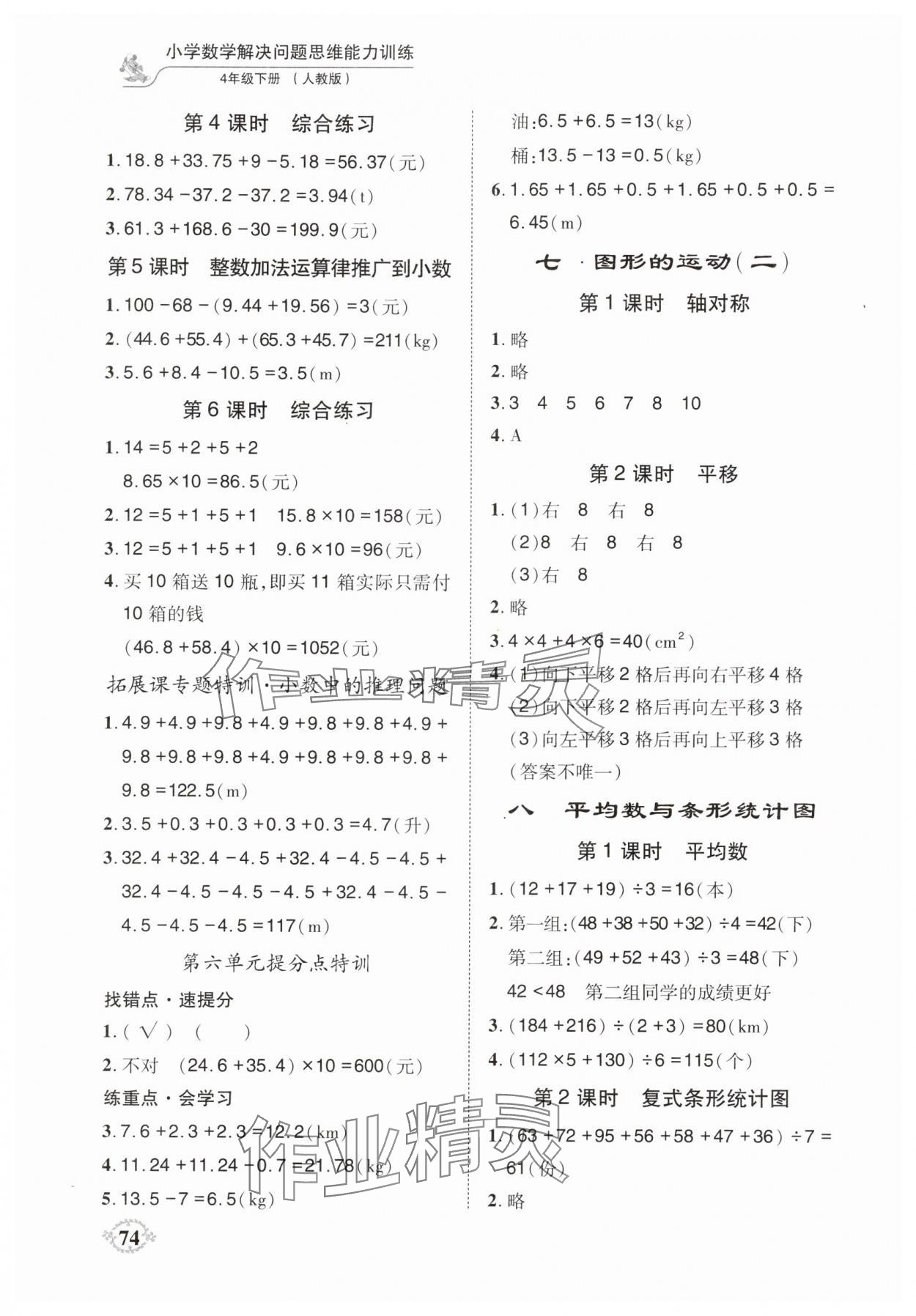 注:目前有些书本章节名称可能整理的还不是很完善,但都是按照顺序排列的,请同学们按照顺序仔细查找。练习册 2025年解决问题思维能力训练四年级数学下册人教版 答案主要是用来给同学们做完题方便对答案用的,请勿直接抄袭。
