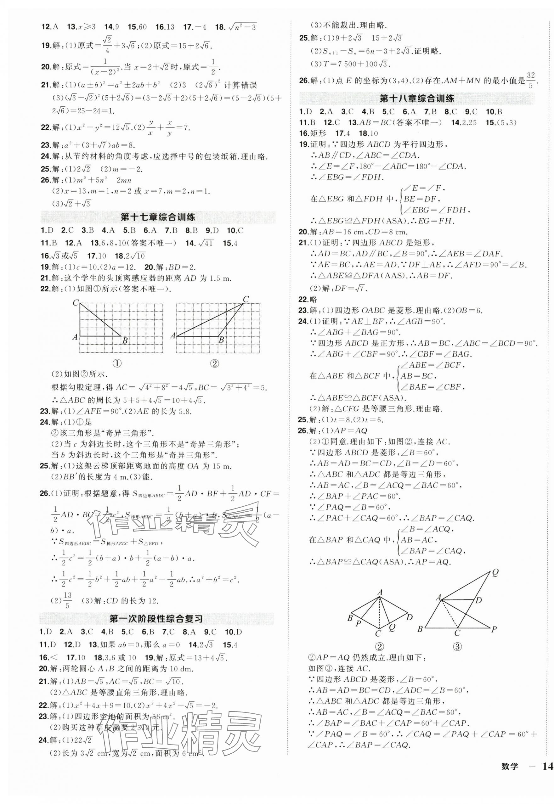 注:目前有些书本章节名称可能整理的还不是很完善,但都是按照顺序排列的,请同学们按照顺序仔细查找。练习册 2025年状元成才路创优作业八年级数学下册人教版广西专版 答案主要是用来给同学们做完题方便对答案用的,请勿直接抄袭。