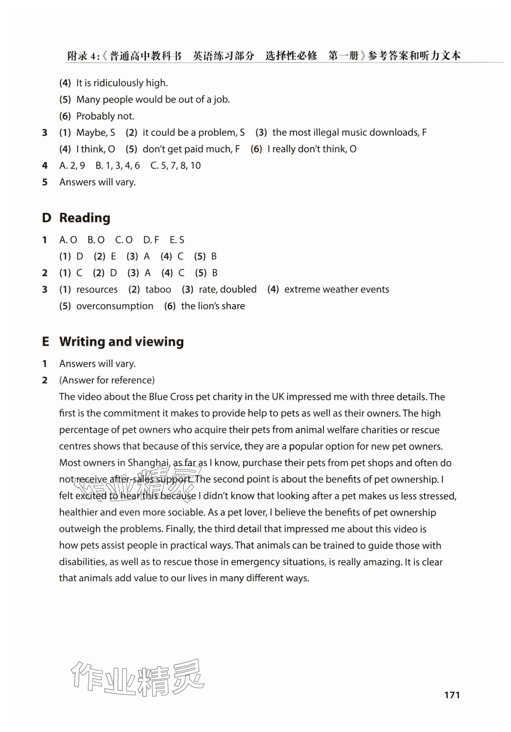 注:目前有些书本章节名称可能整理的还不是很完善,但都是按照顺序排列的,请同学们按照顺序仔细查找。练习册 2024年练习部分高中英语选择性必修第一册沪教版 答案主要是用来给同学们做完题方便对答案用的,请勿直接抄袭。