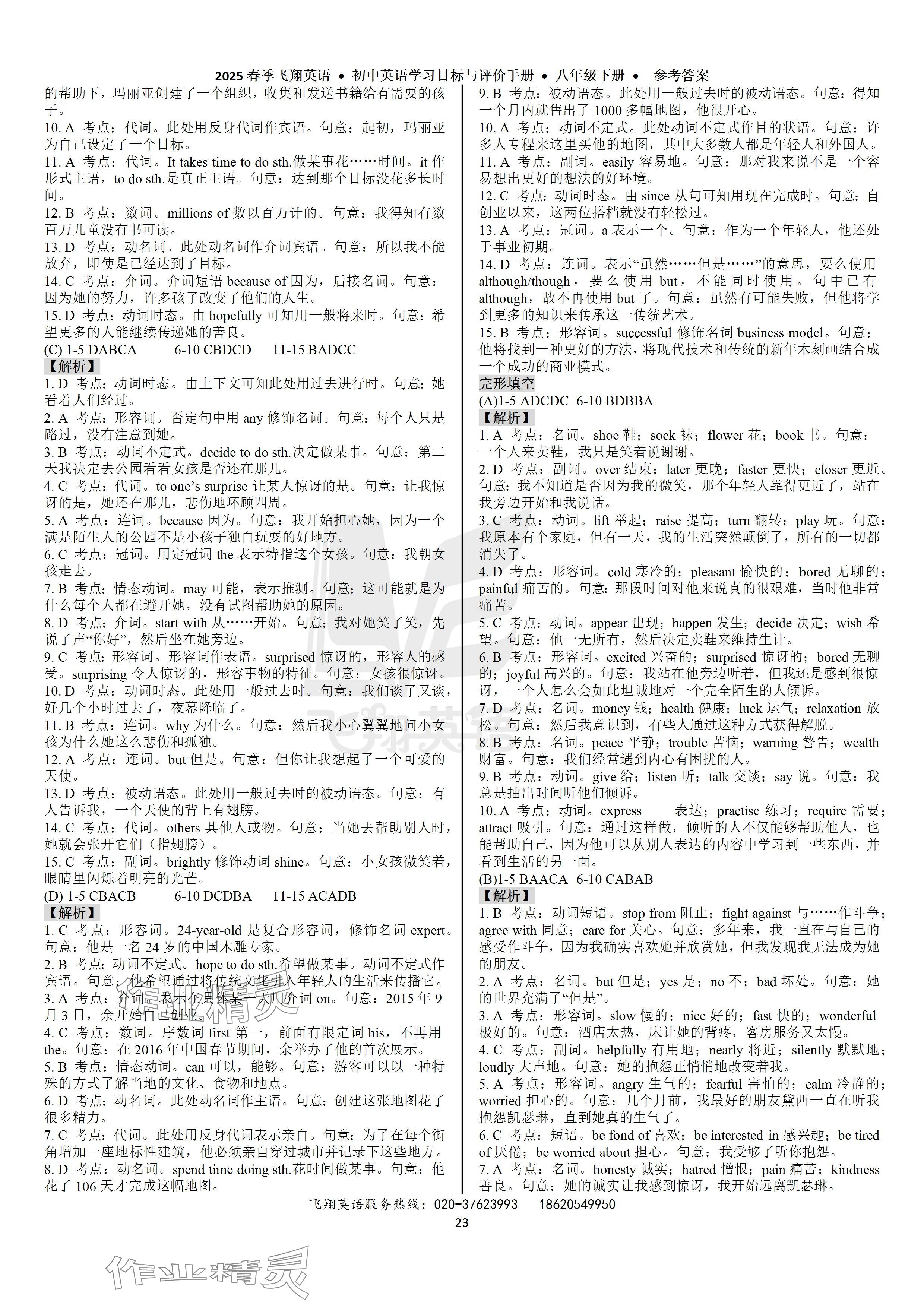 注:目前有些书本章节名称可能整理的还不是很完善,但都是按照顺序排列的,请同学们按照顺序仔细查找。练习册 2025年初中英语学习目标与评价手册八年级下册广州版 答案主要是用来给同学们做完题方便对答案用的,请勿直接抄袭。