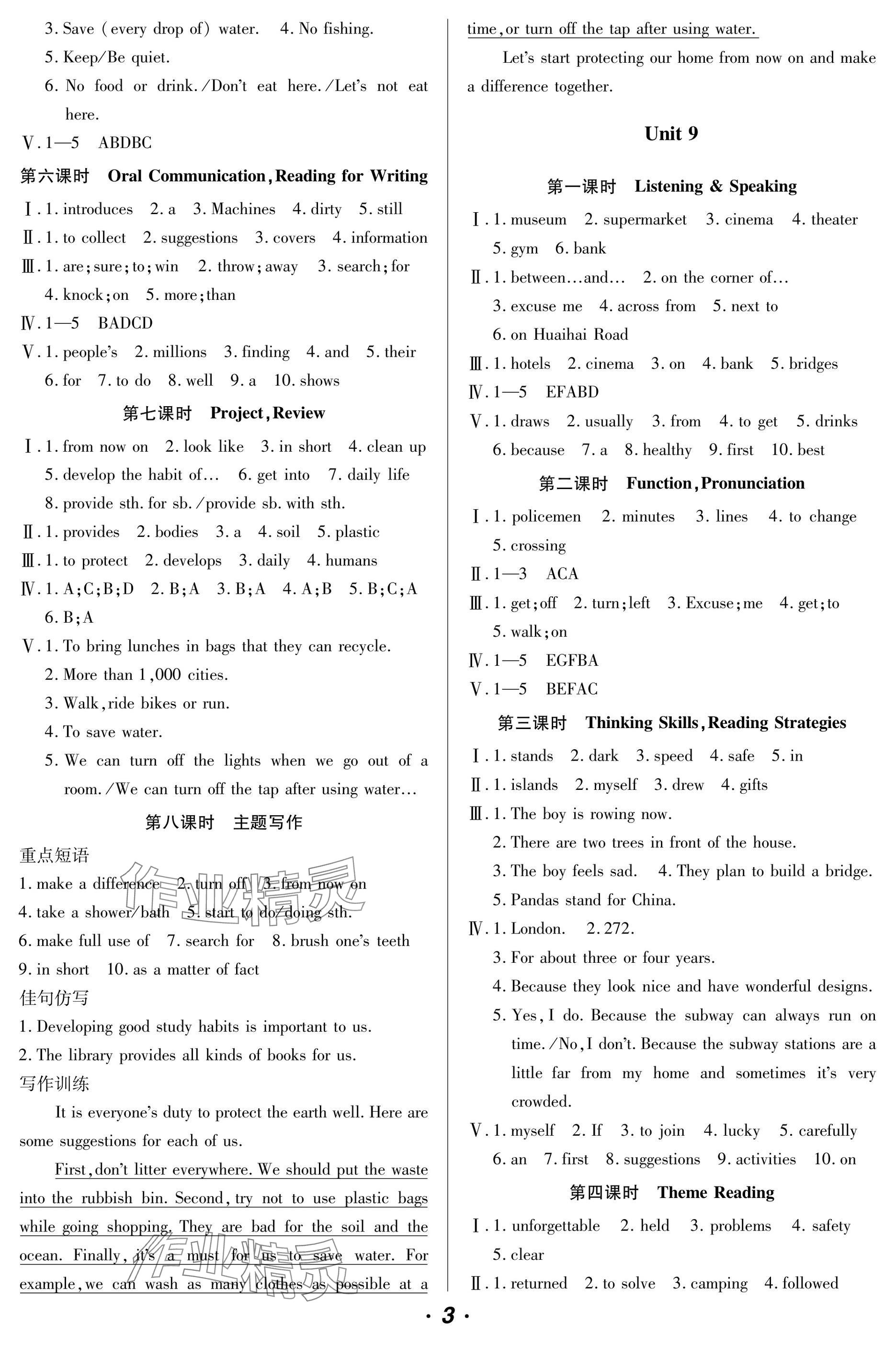 精英家教网> 2025年激情英语初中同步课时滚动练七年级英语下册仁爱版福建专版 > 参考答案第3页 参考答案
