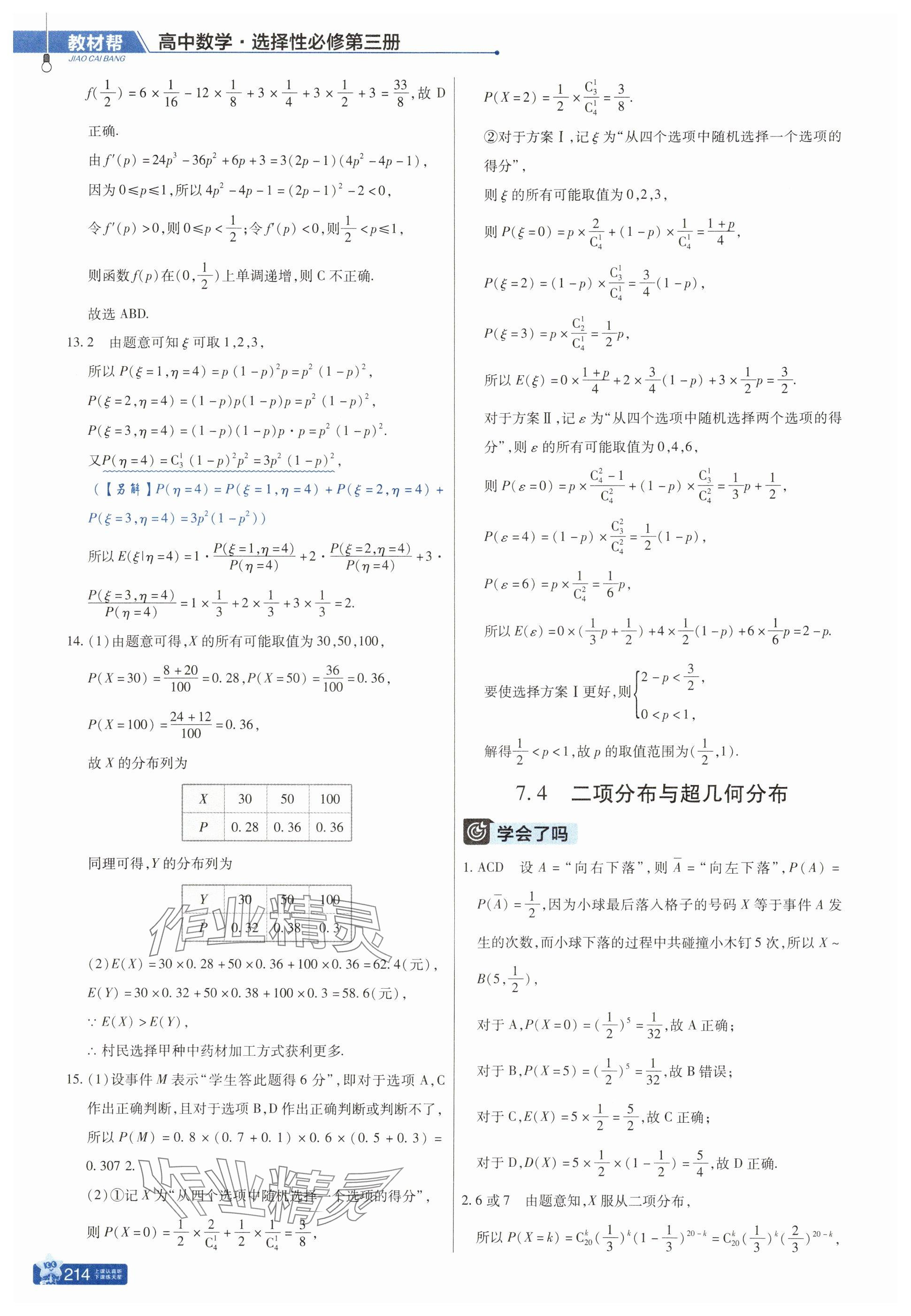 注:目前有些书本章节名称可能整理的还不是很完善,但都是按照顺序排列的,请同学们按照顺序仔细查找。练习册 2025年教材帮高中数学选择性必修第三册人教版 答案主要是用来给同学们做完题方便对答案用的,请勿直接抄袭。