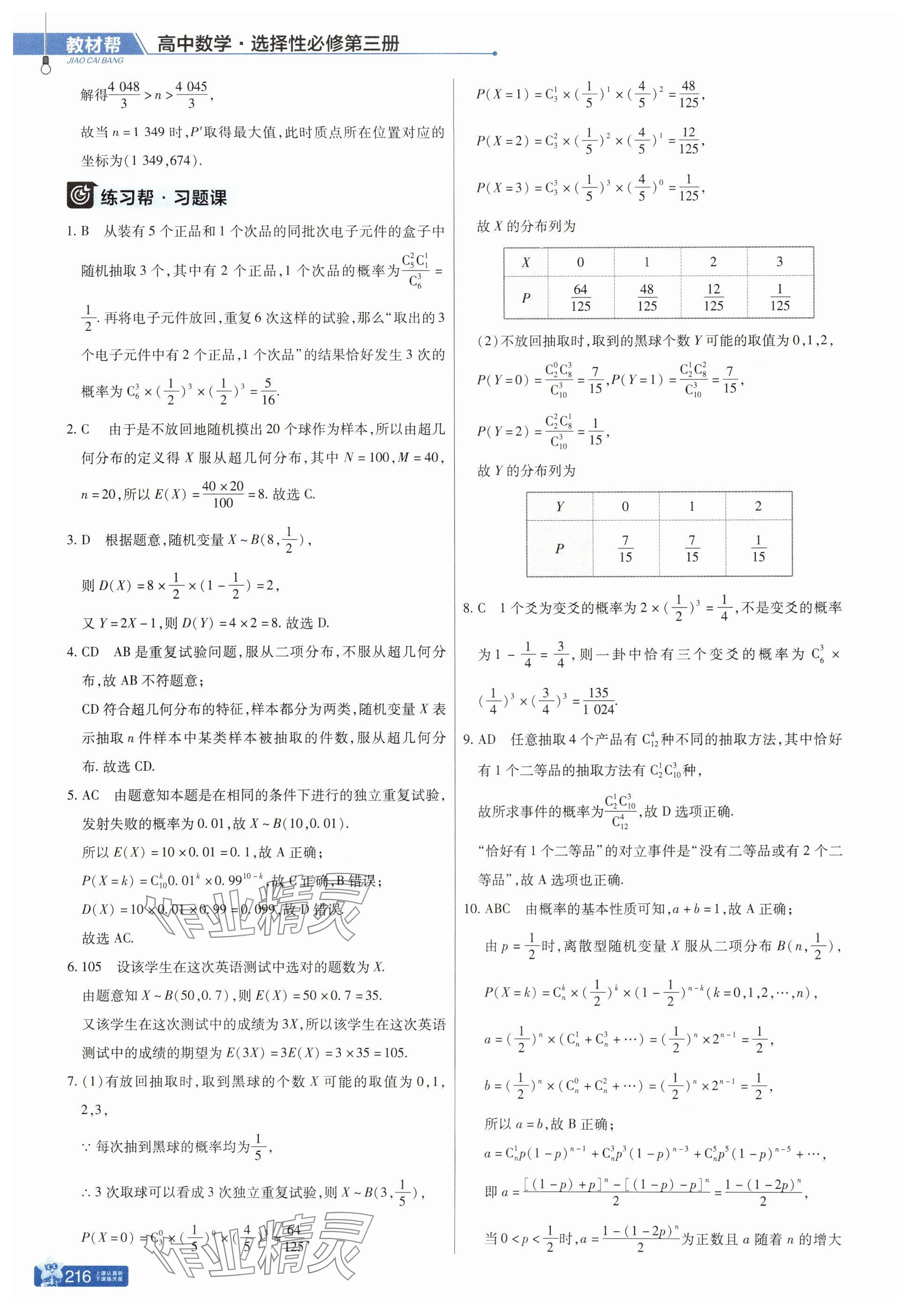 注:目前有些书本章节名称可能整理的还不是很完善,但都是按照顺序排列的,请同学们按照顺序仔细查找。练习册 2025年教材帮高中数学选择性必修第三册人教版 答案主要是用来给同学们做完题方便对答案用的,请勿直接抄袭。