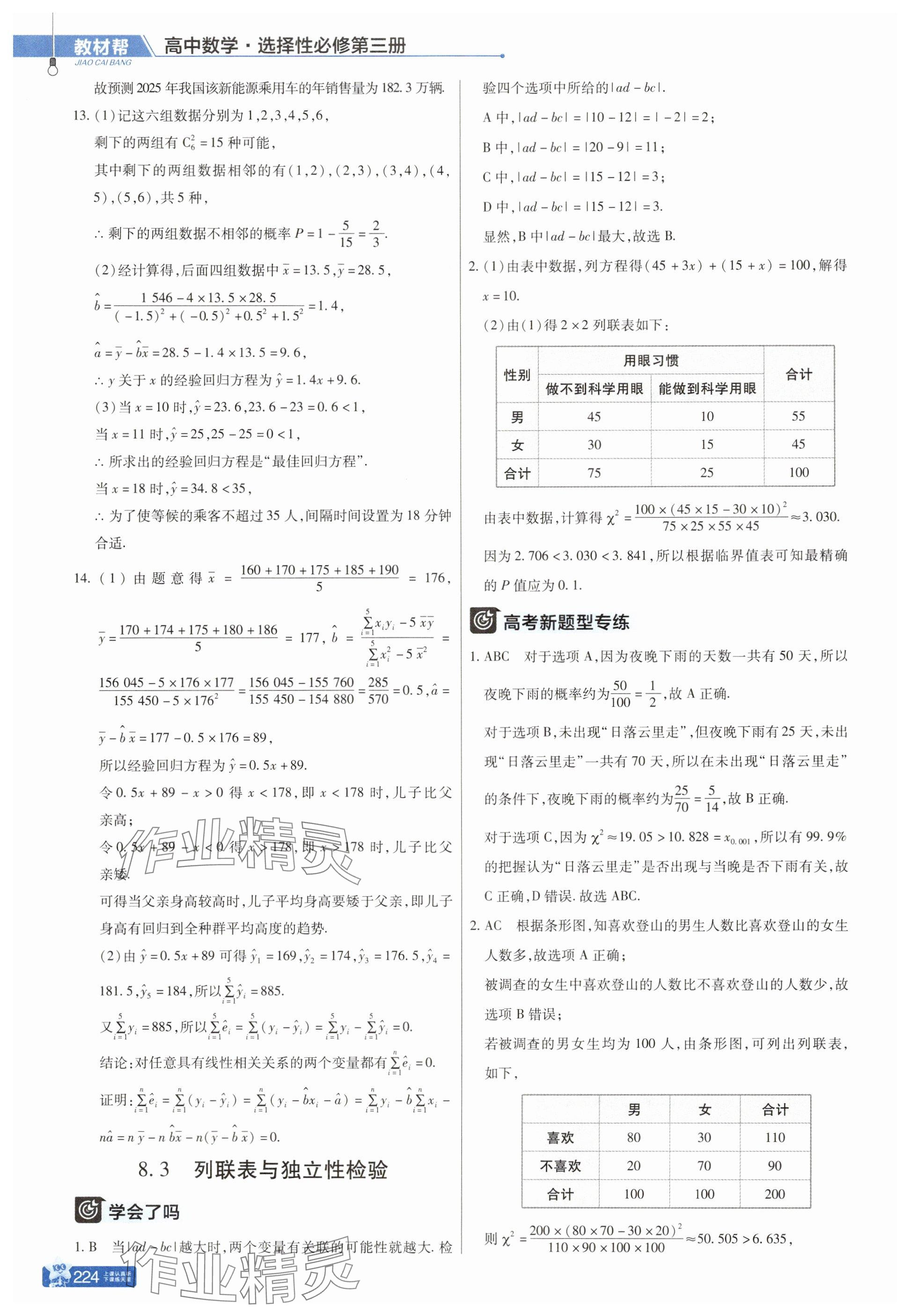 注:目前有些书本章节名称可能整理的还不是很完善,但都是按照顺序排列的,请同学们按照顺序仔细查找。练习册 2025年教材帮高中数学选择性必修第三册人教版 答案主要是用来给同学们做完题方便对答案用的,请勿直接抄袭。