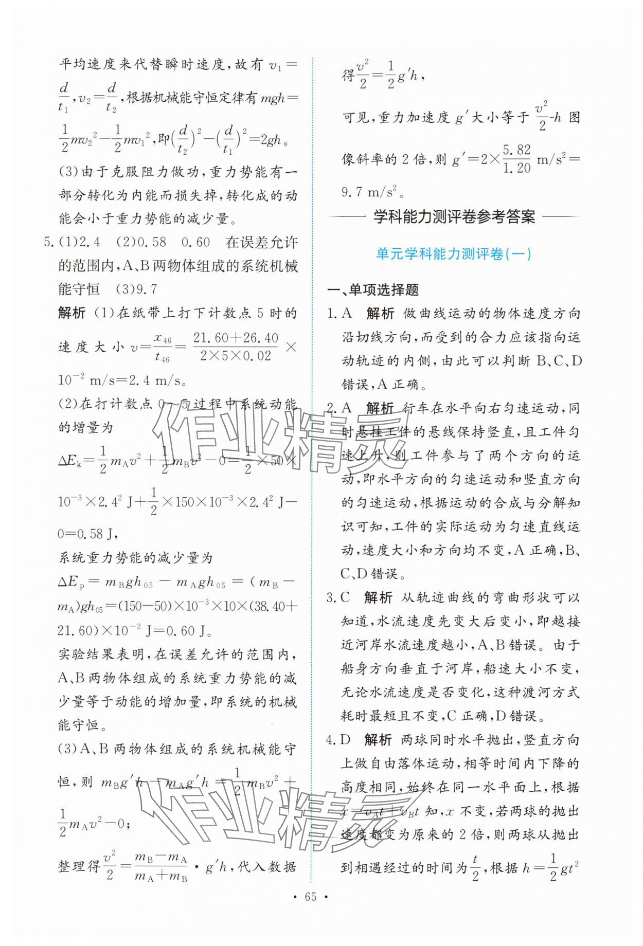 注:目前有些书本章节名称可能整理的还不是很完善,但都是按照顺序排列的,请同学们按照顺序仔细查找。练习册 2025年能力培养与测试高中物理必修第二册人教版 答案主要是用来给同学们做完题方便对答案用的,请勿直接抄袭。