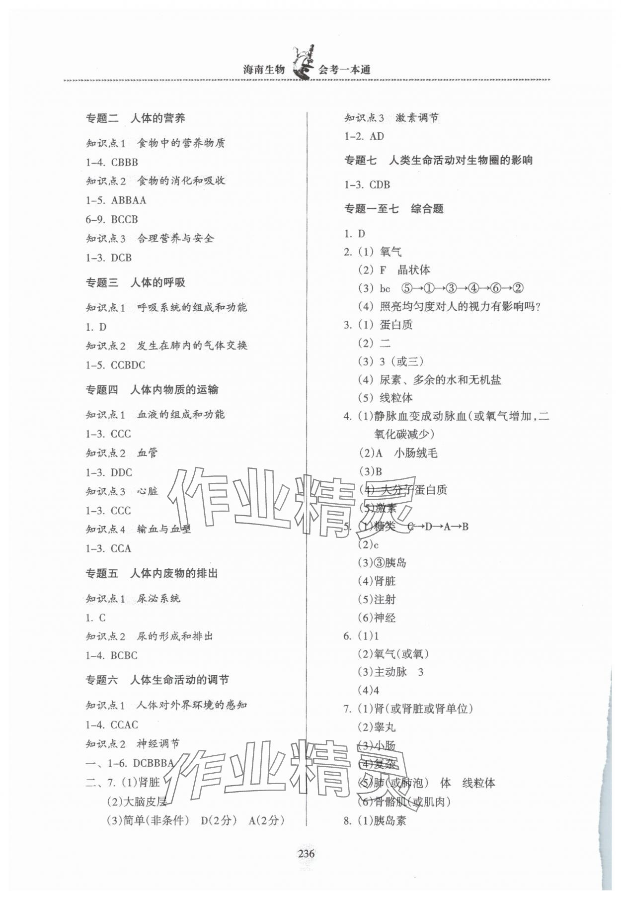 注:目前有些书本章节名称可能整理的还不是很完善,但都是按照顺序排列的,请同学们按照顺序仔细查找。练习册 2025年海南生物会考一本通 答案主要是用来给同学们做完题方便对答案用的,请勿直接抄袭。