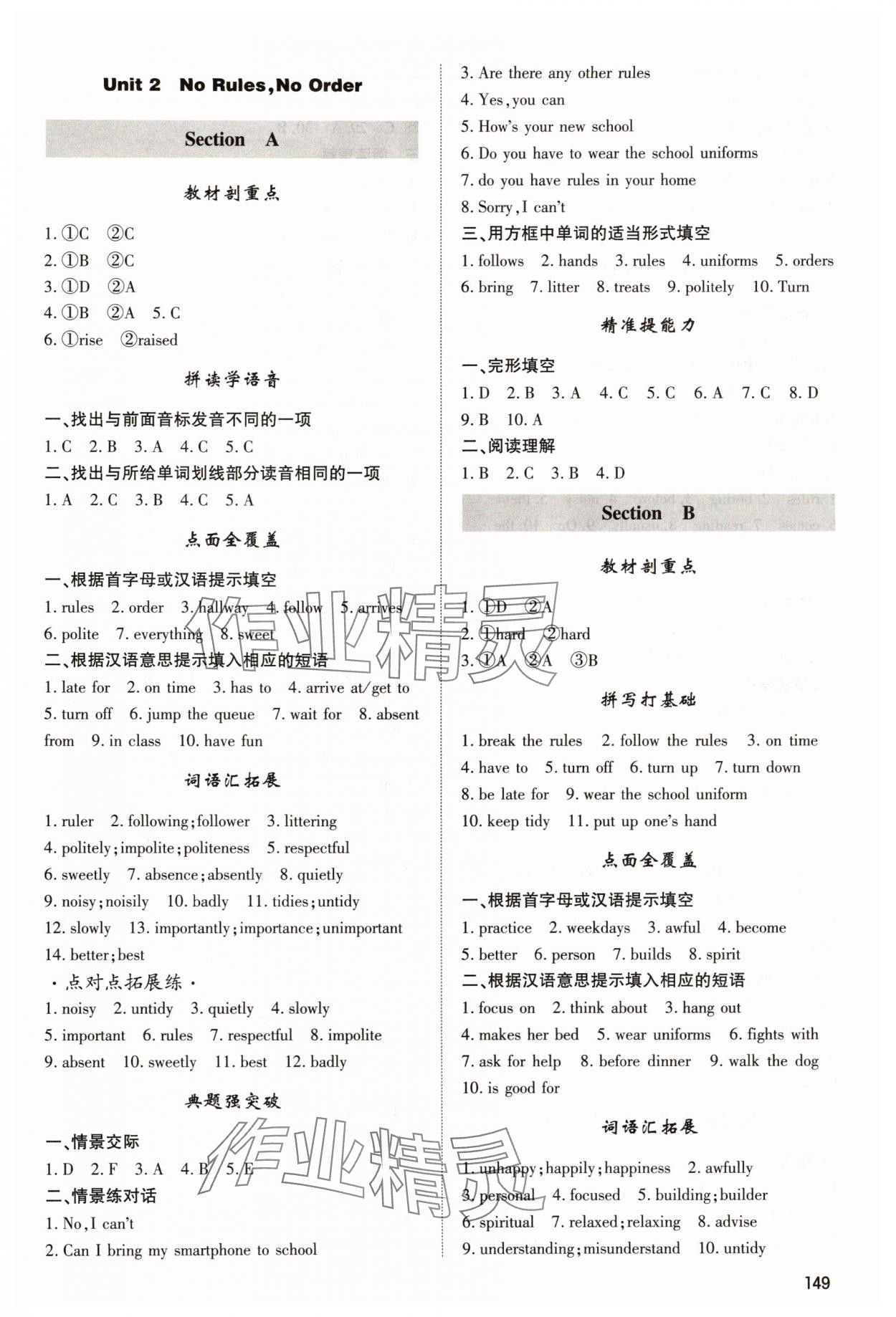 2025年直击中考内蒙古大学出版社七年级英语下册 参考答案第3页