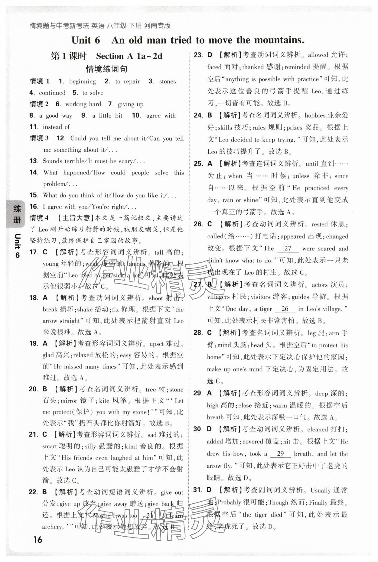 注:目前有些书本章节名称可能整理的还不是很完善,但都是按照顺序排列的,请同学们按照顺序仔细查找。练习册 2025年万唯中考情境题八年级英语下册人教版河南专版 答案主要是用来给同学们做完题方便对答案用的,请勿直接抄袭。