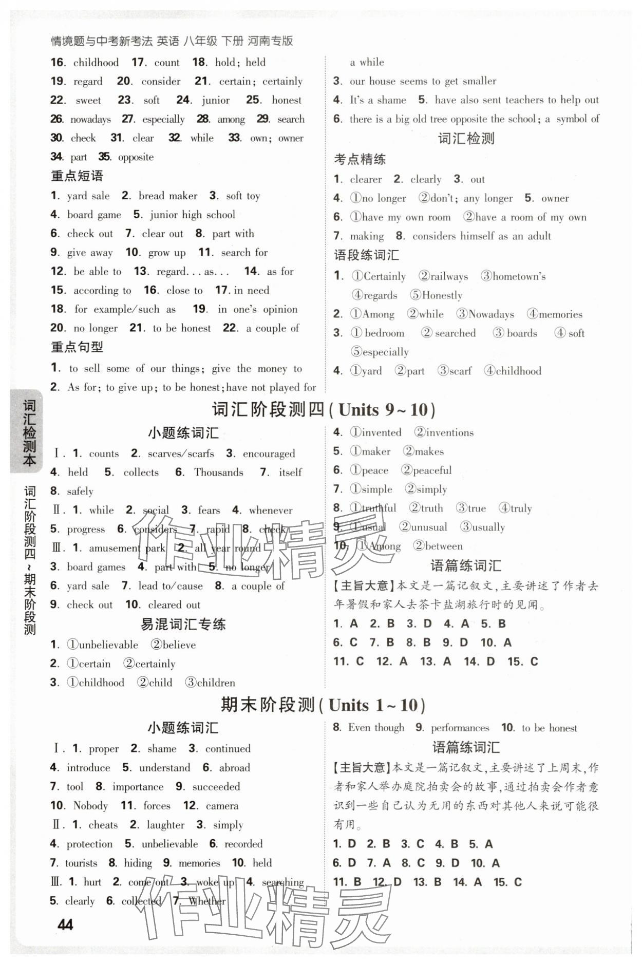 注:目前有些书本章节名称可能整理的还不是很完善,但都是按照顺序排列的,请同学们按照顺序仔细查找。练习册 2025年万唯中考情境题八年级英语下册人教版河南专版 答案主要是用来给同学们做完题方便对答案用的,请勿直接抄袭。