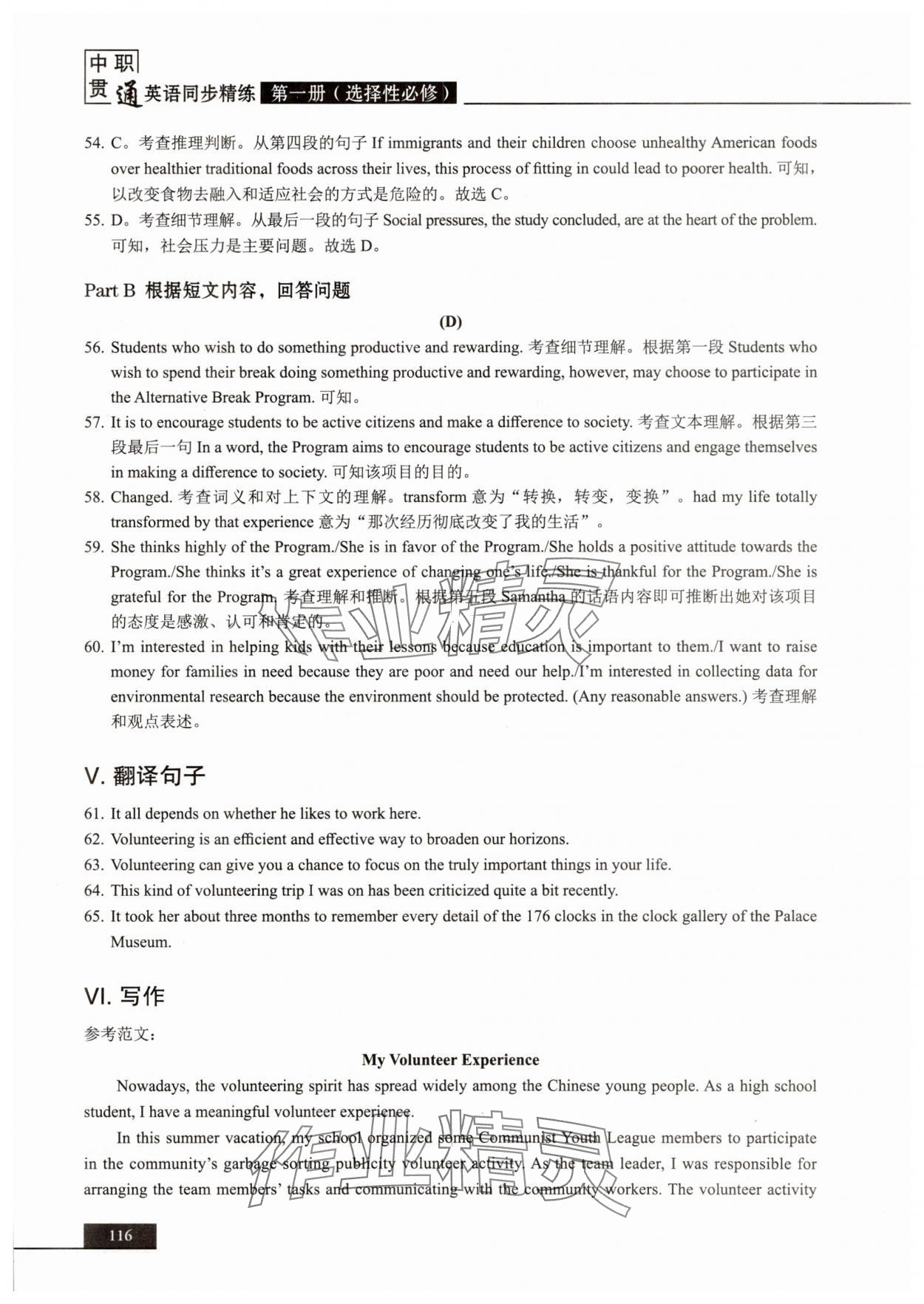 注:目前有些书本章节名称可能整理的还不是很完善,但都是按照顺序排列的,请同学们按照顺序仔细查找。练习册 2025年中职贯通同步精练高中英语选择性必修第一册沪教版 答案主要是用来给同学们做完题方便对答案用的,请勿直接抄袭。