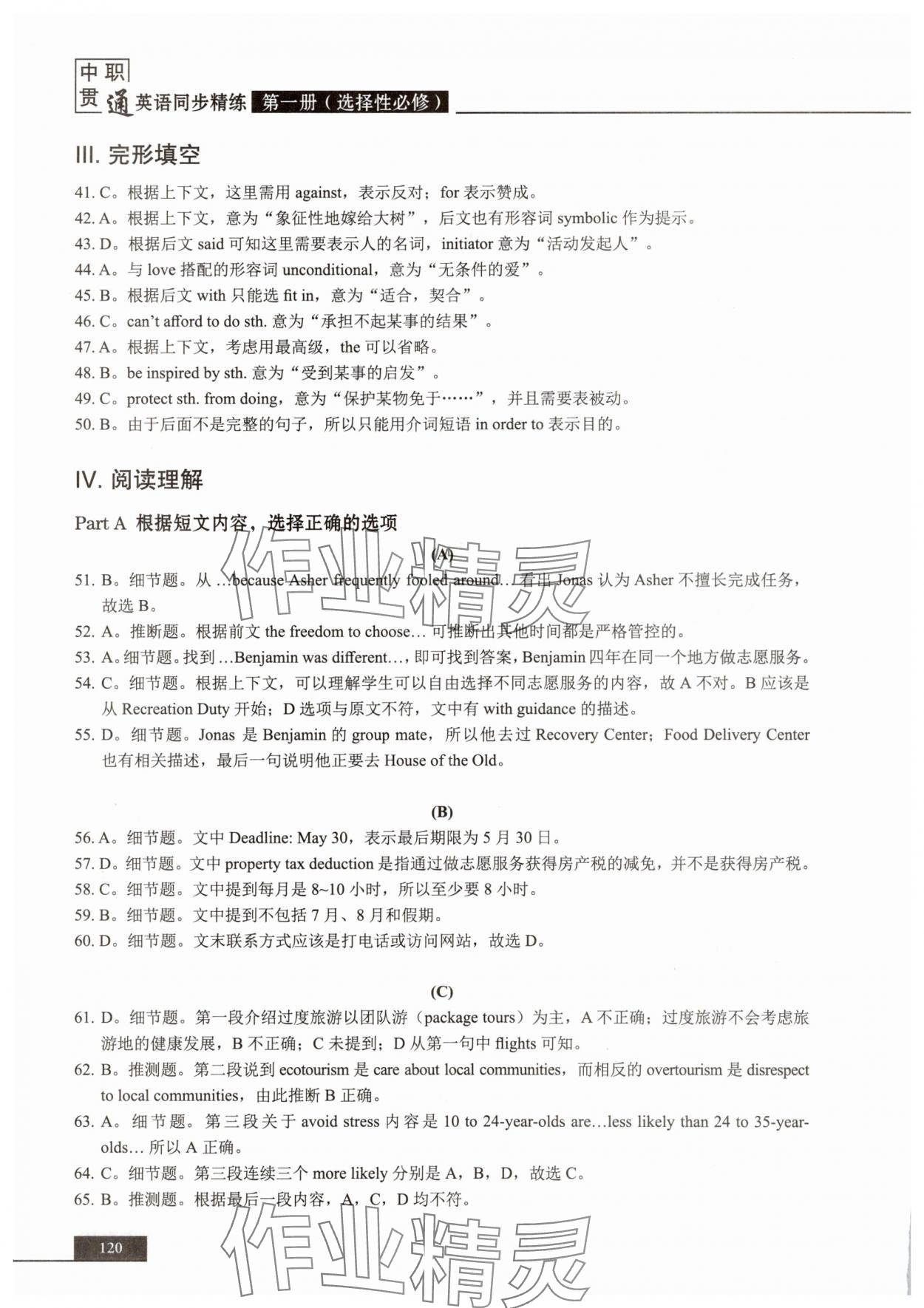 注:目前有些书本章节名称可能整理的还不是很完善,但都是按照顺序排列的,请同学们按照顺序仔细查找。练习册 2025年中职贯通同步精练高中英语选择性必修第一册沪教版 答案主要是用来给同学们做完题方便对答案用的,请勿直接抄袭。