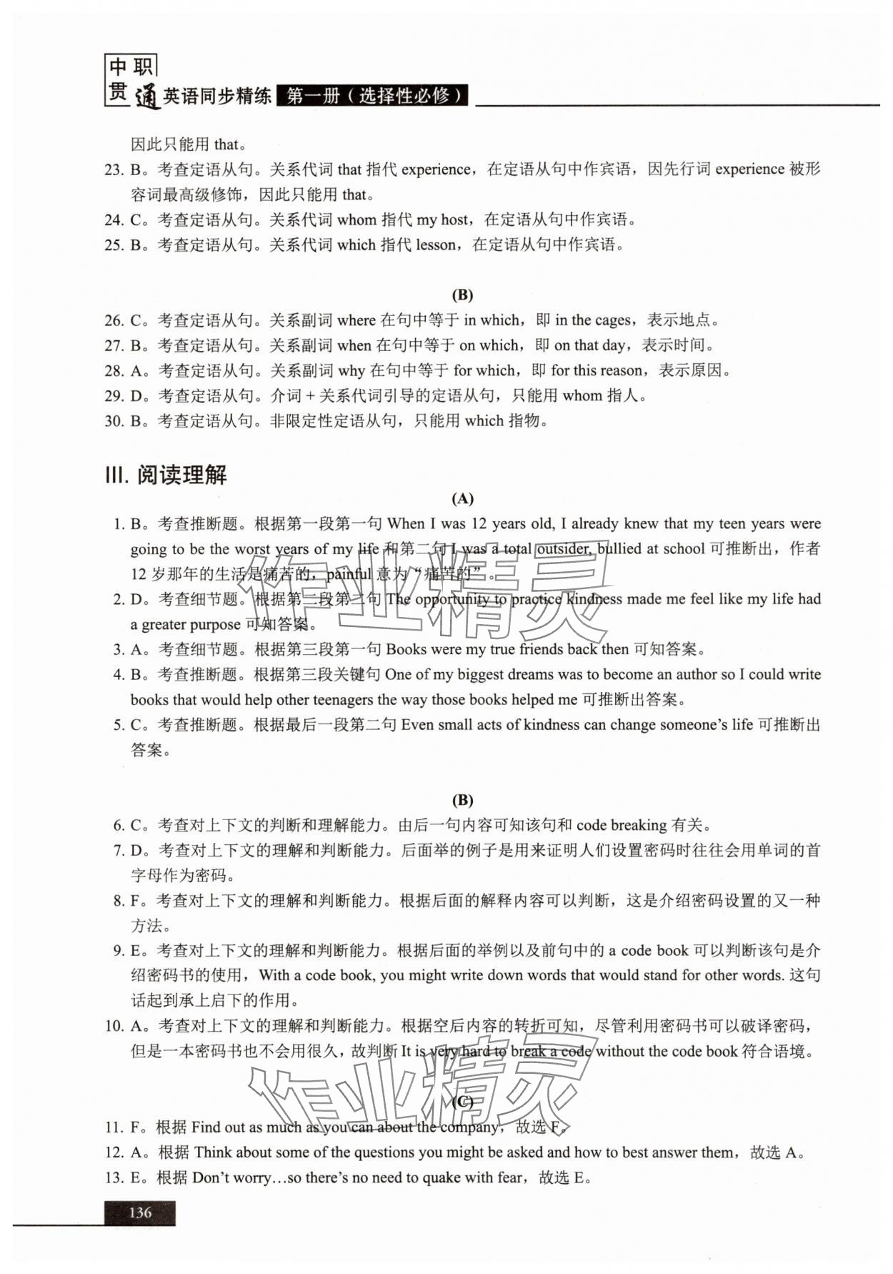 注:目前有些书本章节名称可能整理的还不是很完善,但都是按照顺序排列的,请同学们按照顺序仔细查找。练习册 2025年中职贯通同步精练高中英语选择性必修第一册沪教版 答案主要是用来给同学们做完题方便对答案用的,请勿直接抄袭。