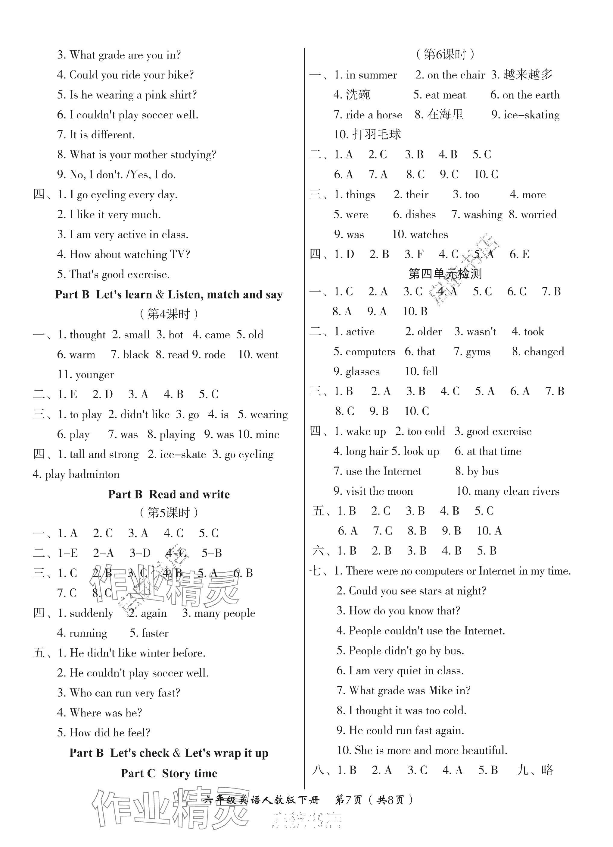 注:目前有些书本章节名称可能整理的还不是很完善,但都是按照顺序排列的,请同学们按照顺序仔细查找。练习册 2025年高效课堂8分钟六年级英语下册人教版 答案主要是用来给同学们做完题方便对答案用的,请勿直接抄袭。