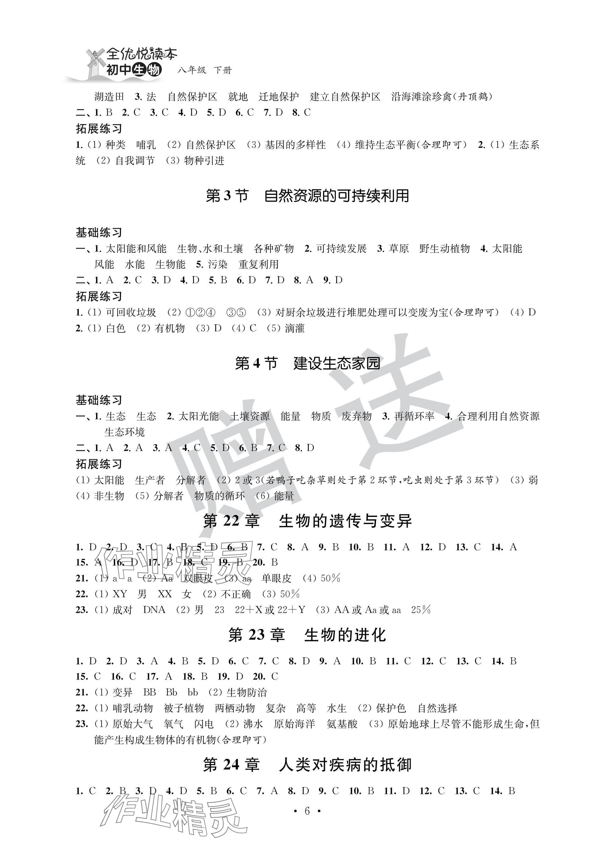 注:目前有些书本章节名称可能整理的还不是很完善,但都是按照顺序排列的,请同学们按照顺序仔细查找。练习册 2025年全优悦读本八年级生物下册苏科版 答案主要是用来给同学们做完题方便对答案用的,请勿直接抄袭。