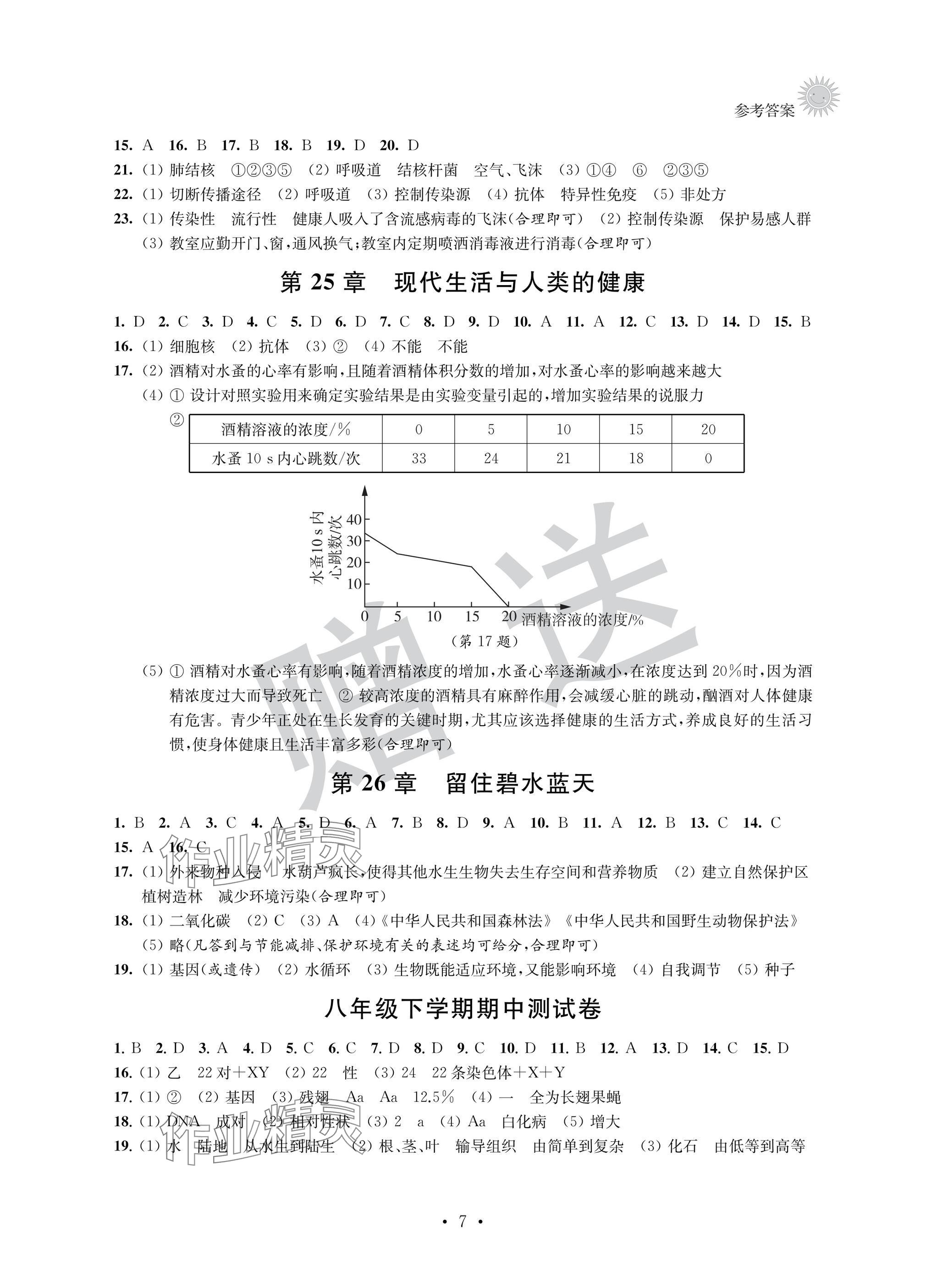 注:目前有些书本章节名称可能整理的还不是很完善,但都是按照顺序排列的,请同学们按照顺序仔细查找。练习册 2025年全优悦读本八年级生物下册苏科版 答案主要是用来给同学们做完题方便对答案用的,请勿直接抄袭。