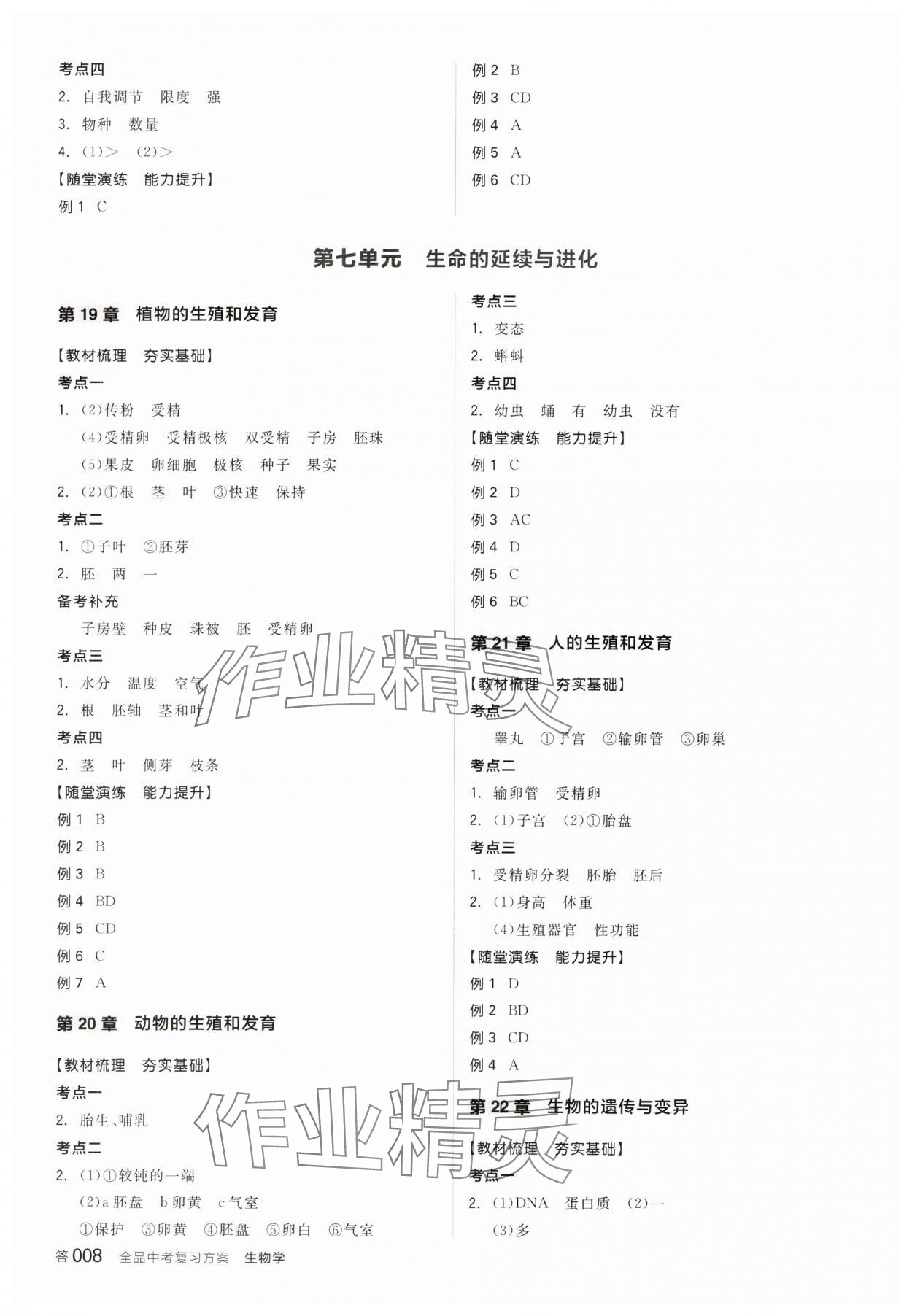 注:目前有些书本章节名称可能整理的还不是很完善,但都是按照顺序排列的,请同学们按照顺序仔细查找。练习册 2025年全品中考复习方案生物淮安专版 答案主要是用来给同学们做完题方便对答案用的,请勿直接抄袭。