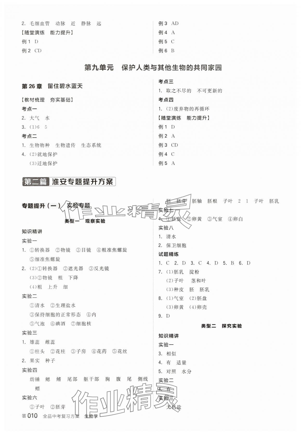 注:目前有些书本章节名称可能整理的还不是很完善,但都是按照顺序排列的,请同学们按照顺序仔细查找。练习册 2025年全品中考复习方案生物淮安专版 答案主要是用来给同学们做完题方便对答案用的,请勿直接抄袭。