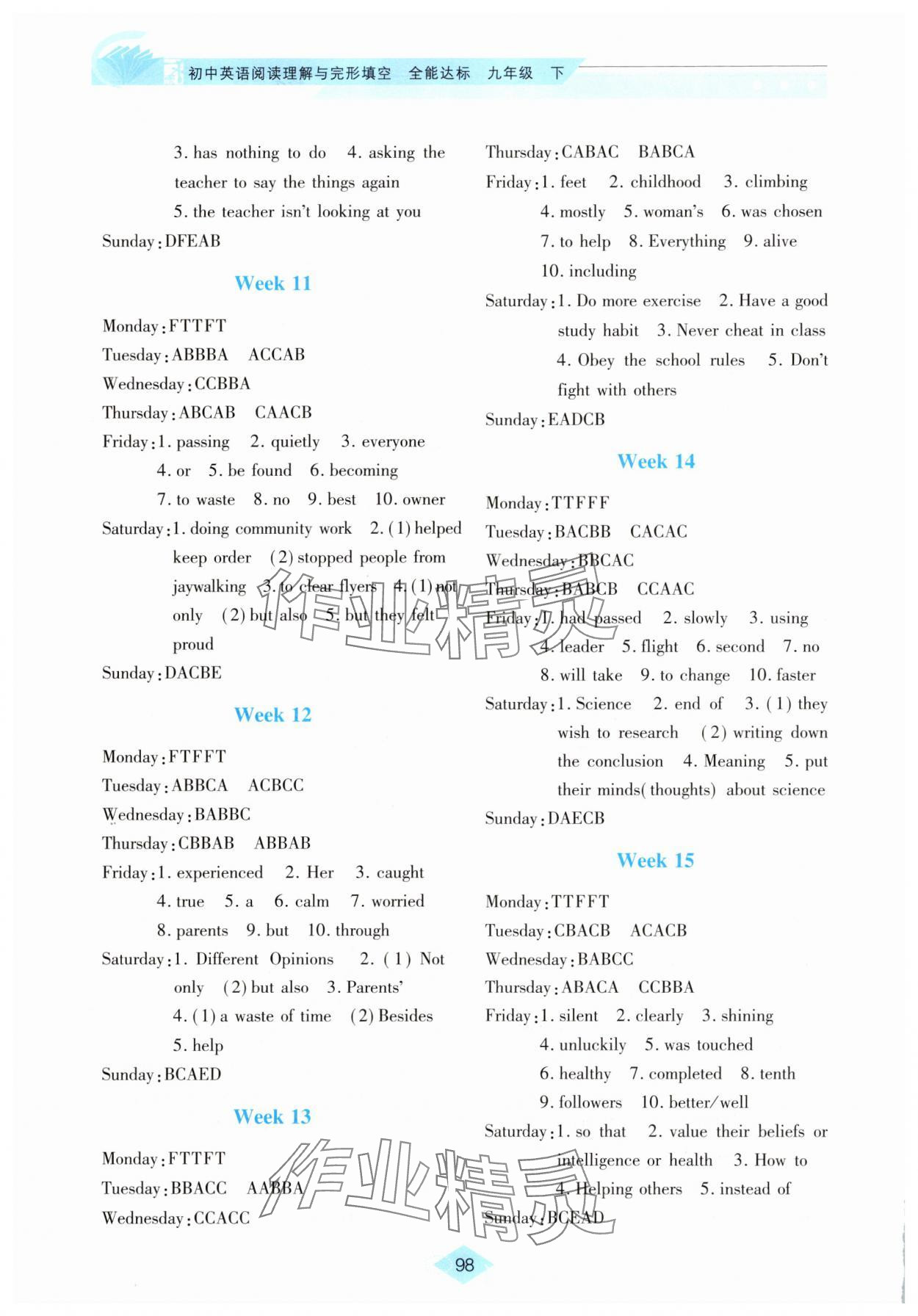 注:目前有些书本章节名称可能整理的还不是很完善,但都是按照顺序排列的,请同学们按照顺序仔细查找。练习册 2025年阅读理解与完形填空全能达标九年级英语下册 答案主要是用来给同学们做完题方便对答案用的,请勿直接抄袭。